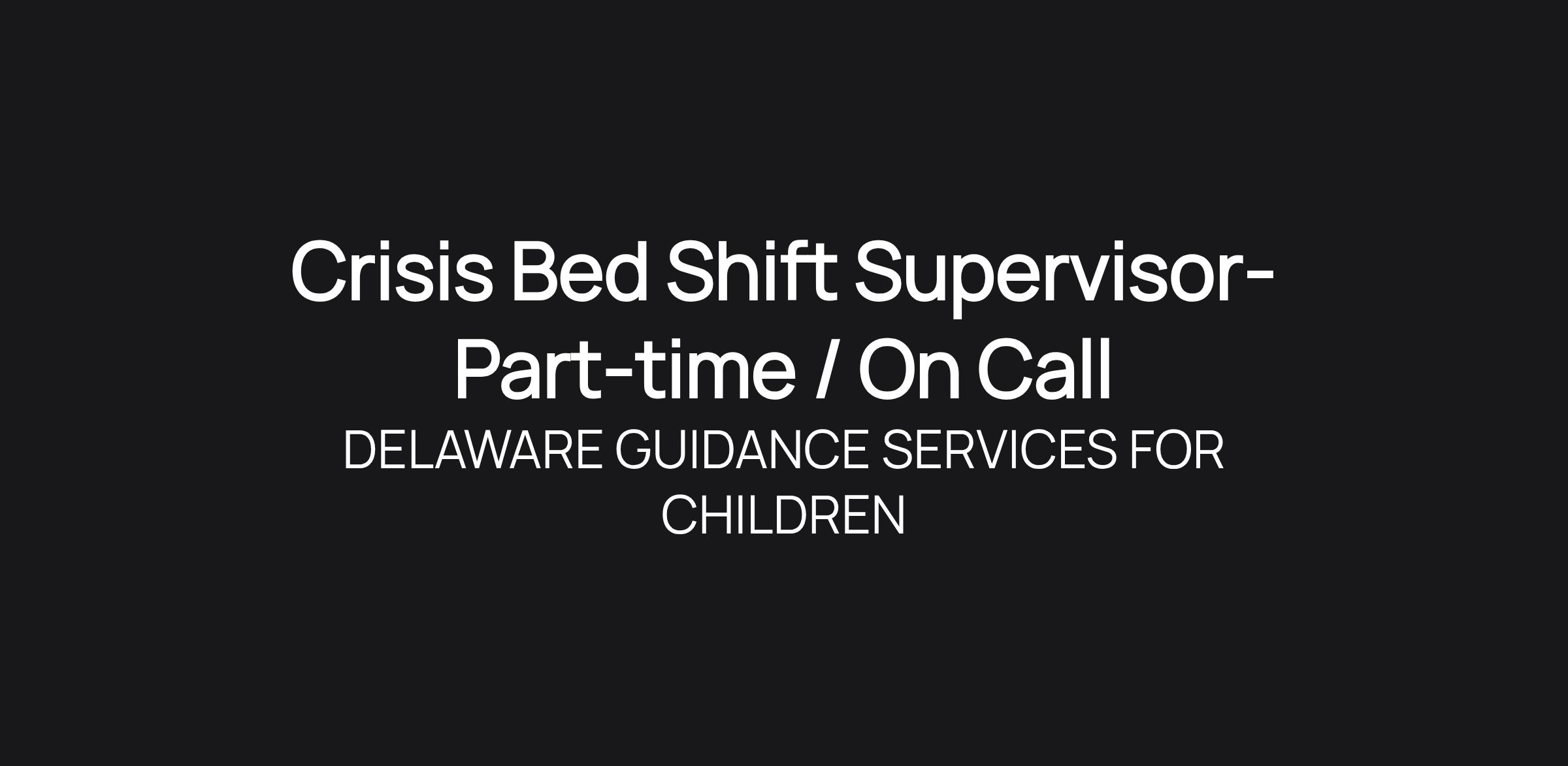 Crisis Bed Shift Supervisor- Part-time / On Call