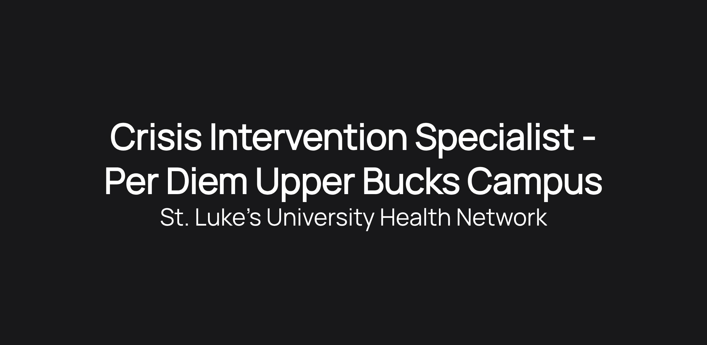 Crisis Intervention Specialist - Per Diem Upper Bucks Campus