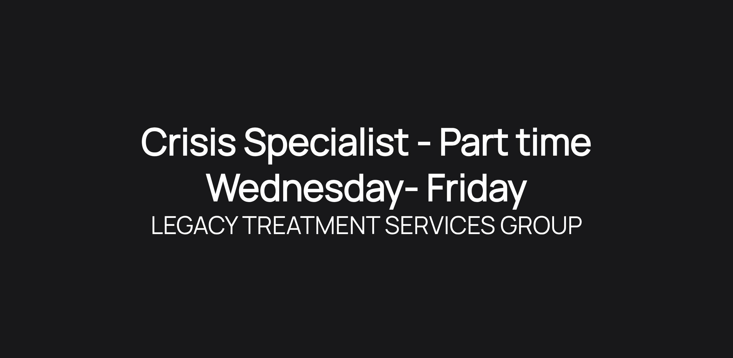 Crisis Specialist - Part time Wednesday- Friday