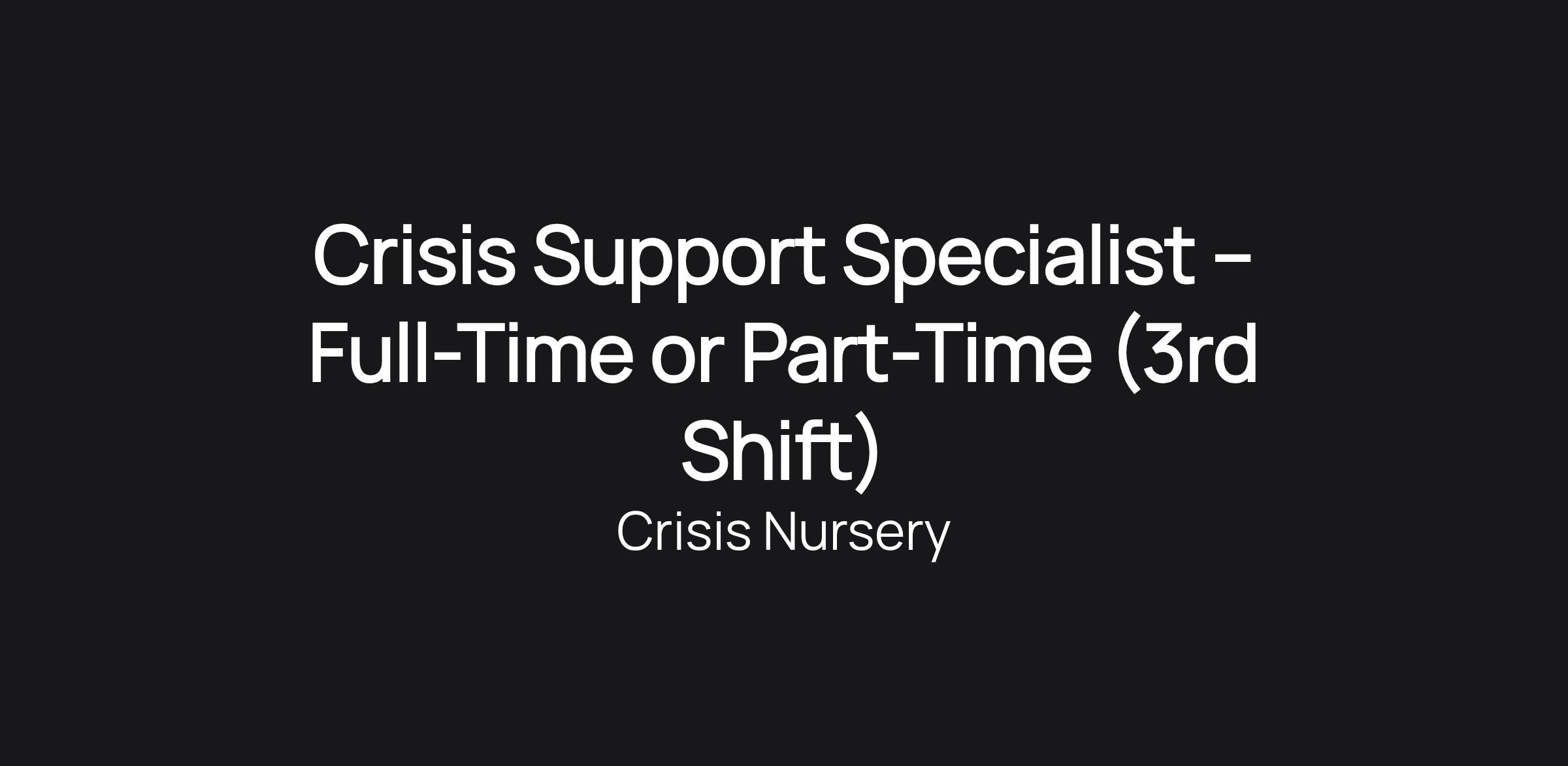 Crisis Support Specialist – Full-Time or Part-Time (3rd Shift)