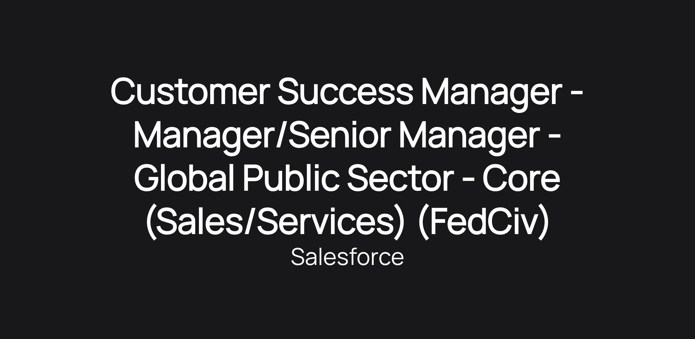 Customer Success Manager - Manager/Senior Manager - Global Public Sector - Core (Sales/Services) (FedCiv)