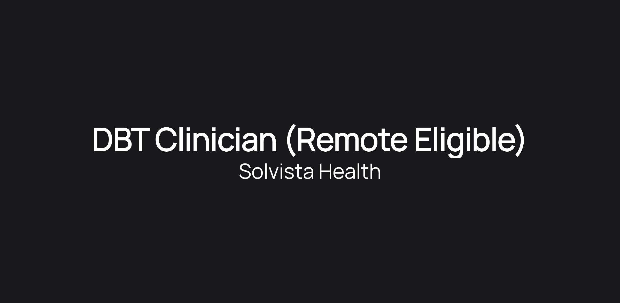 DBT Clinician (Remote Eligible)