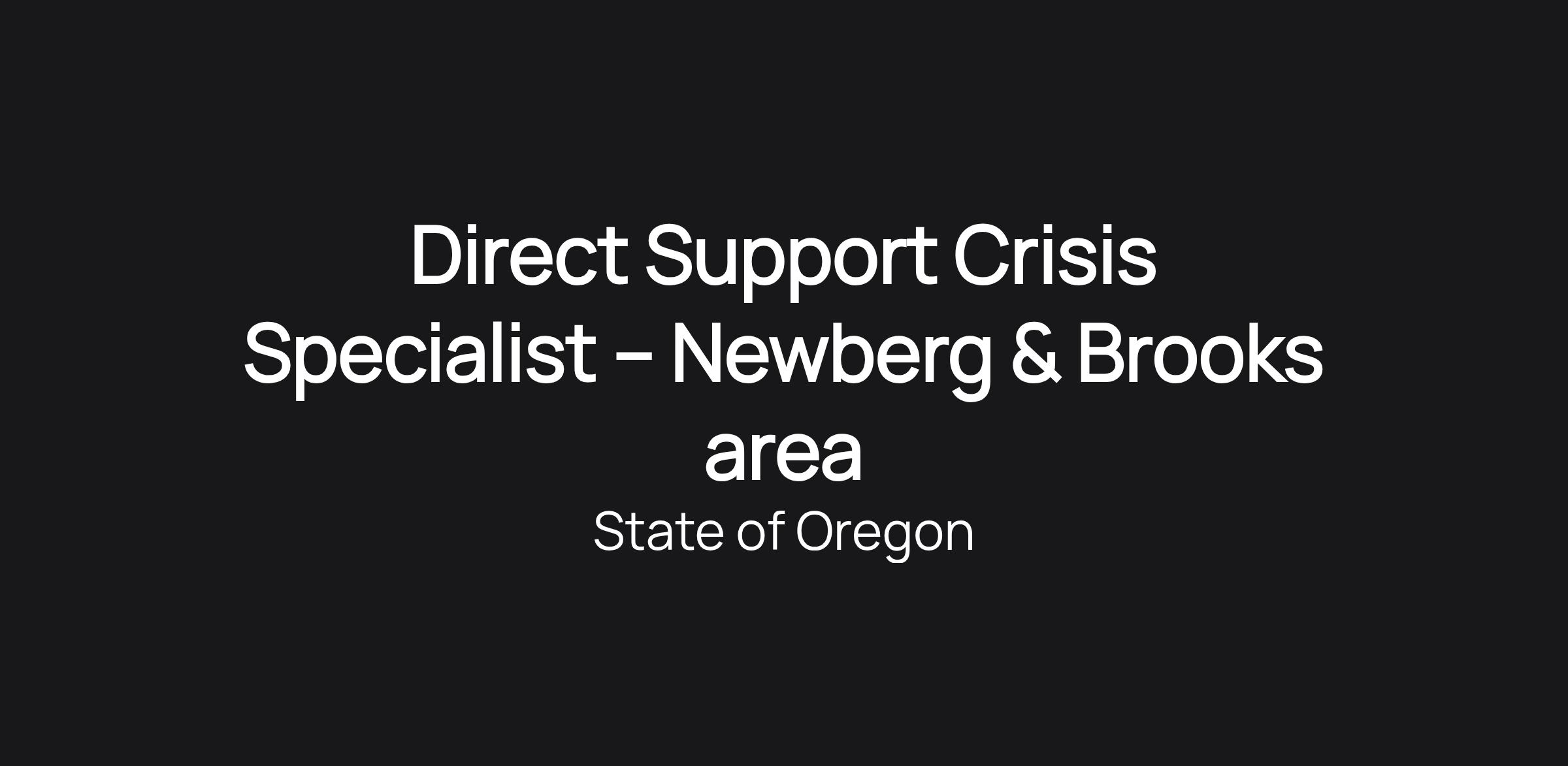 Direct Support Crisis Specialist – Newberg & Brooks area