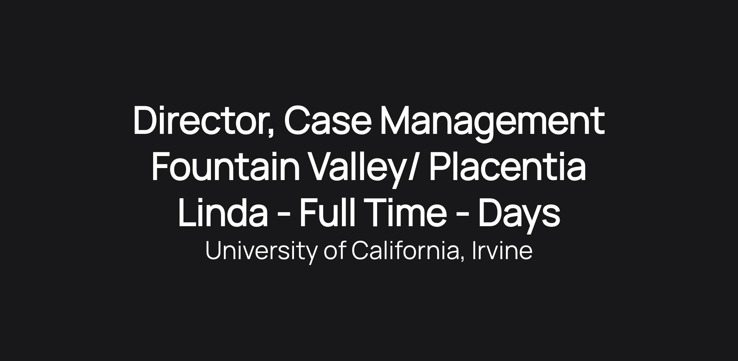 Director, Case Management Fountain Valley/ Placentia Linda - Full Time - Days