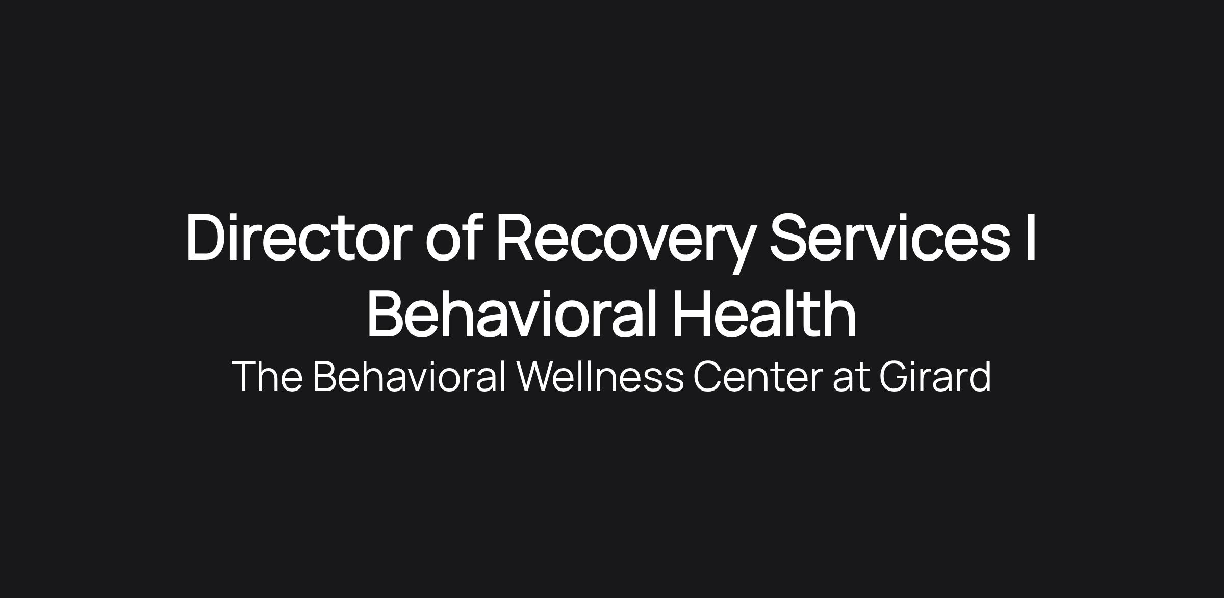 The Behavioral Wellness Center at Girard is seeking an experienced Director of Recovery Services to lead and oversee recovery behavioral health and substance use disorder programs within the Department of Behavioral Medicine.