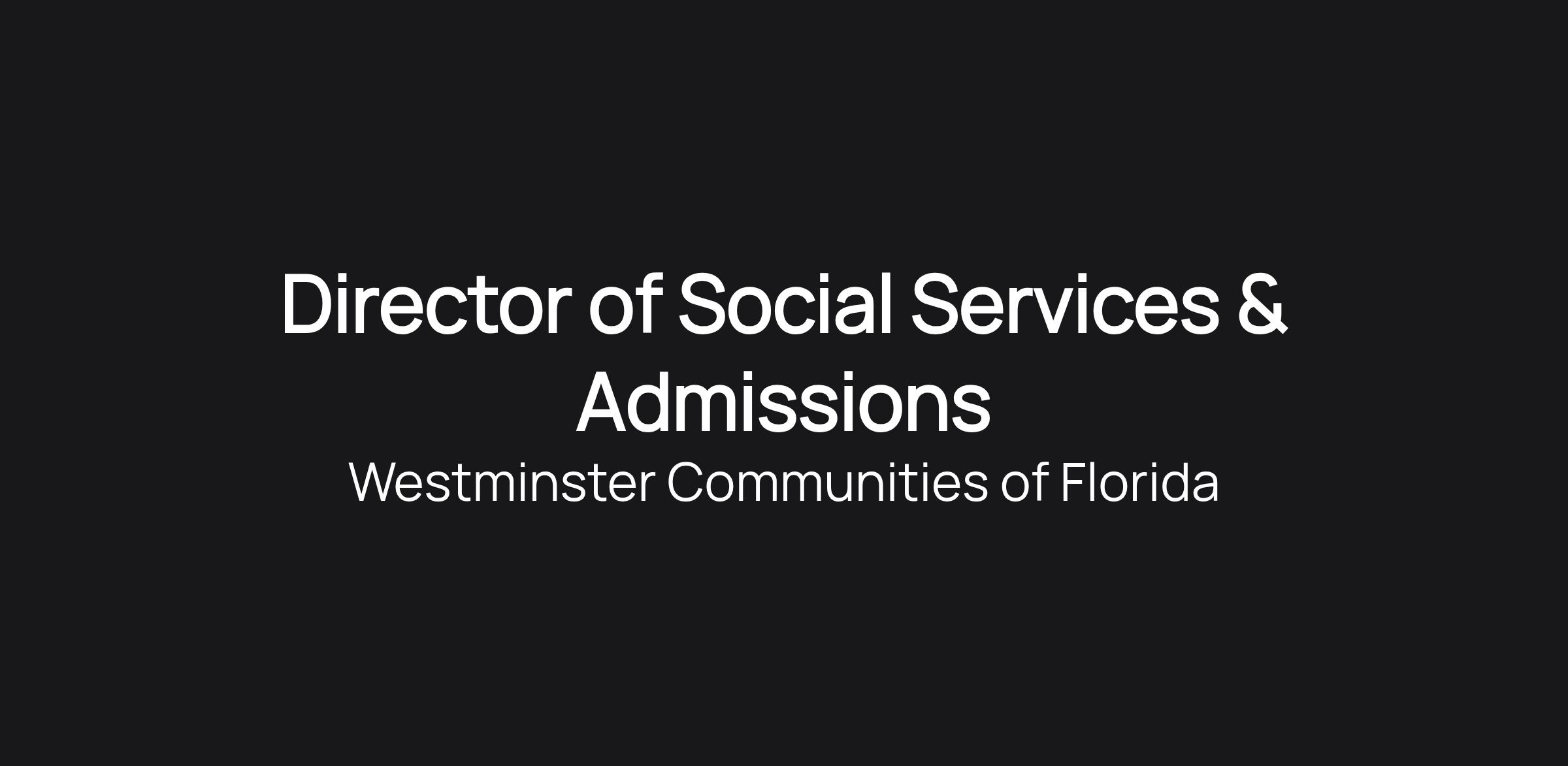 Located in the heart of World Golf Village, Westminster St. Augustine is currently accepting applications for a full-time Director of Social Services & Admissions in our Health Center. This individual will assure that the emotional and social needs of all residents are met and maintained in accordance with regulatory guidelines. Also, responsible for marketing the Health Center and maintaining Health Center occupancy.