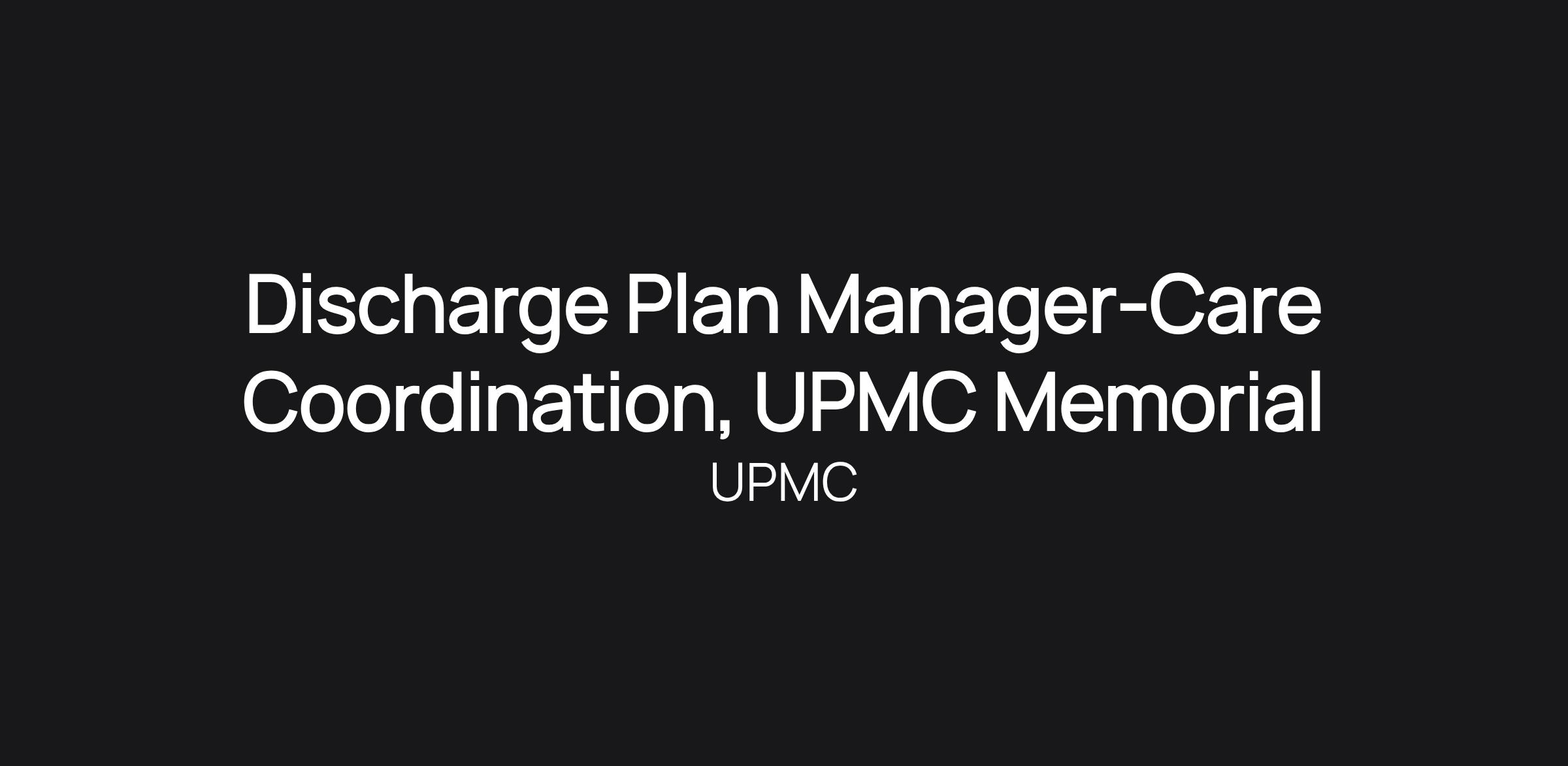 Discharge Plan Manager-Care Coordination, UPMC Memorial