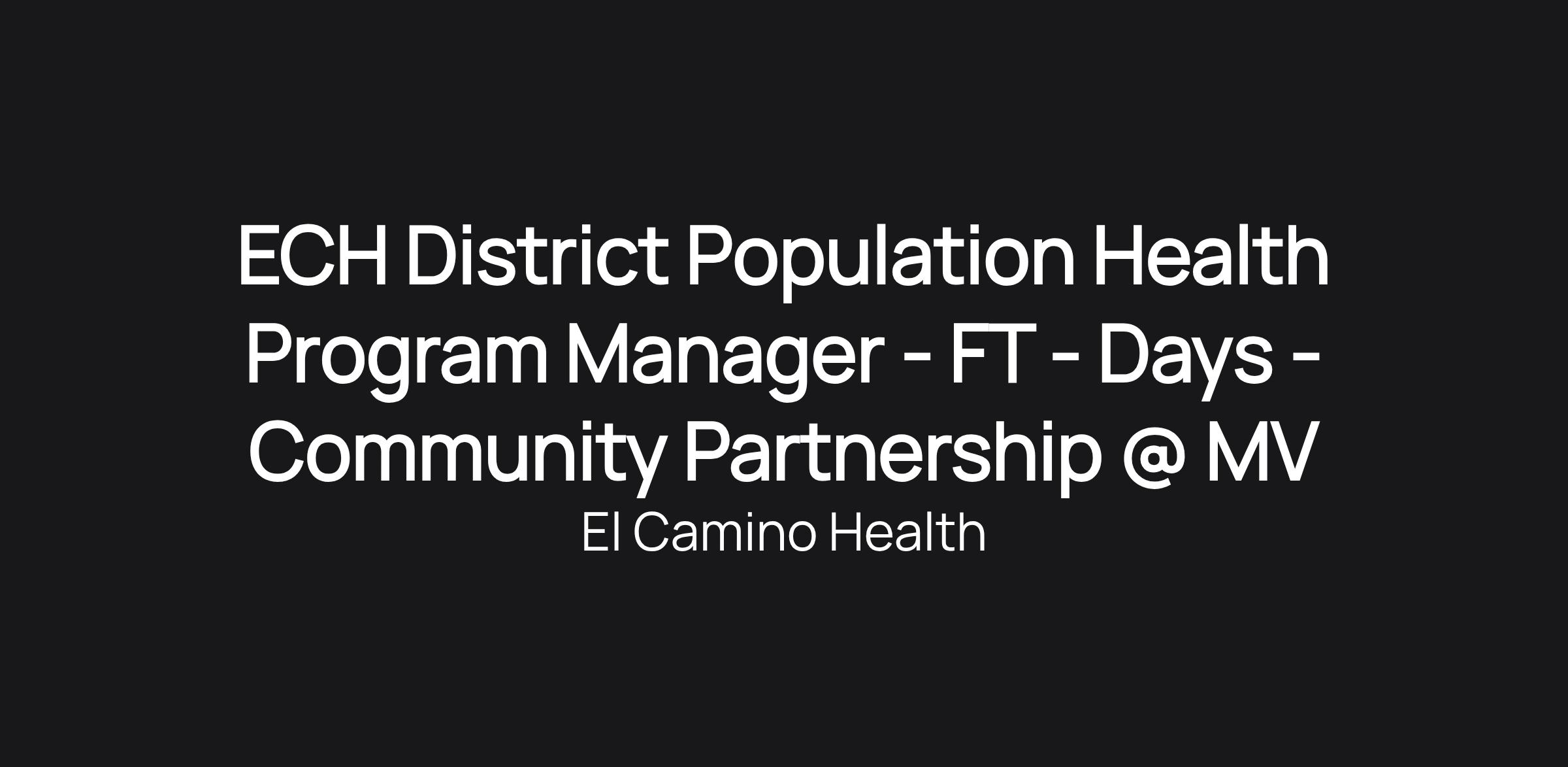 ECH District Population Health Program Manager - FT - Days - Community Partnership @ MV