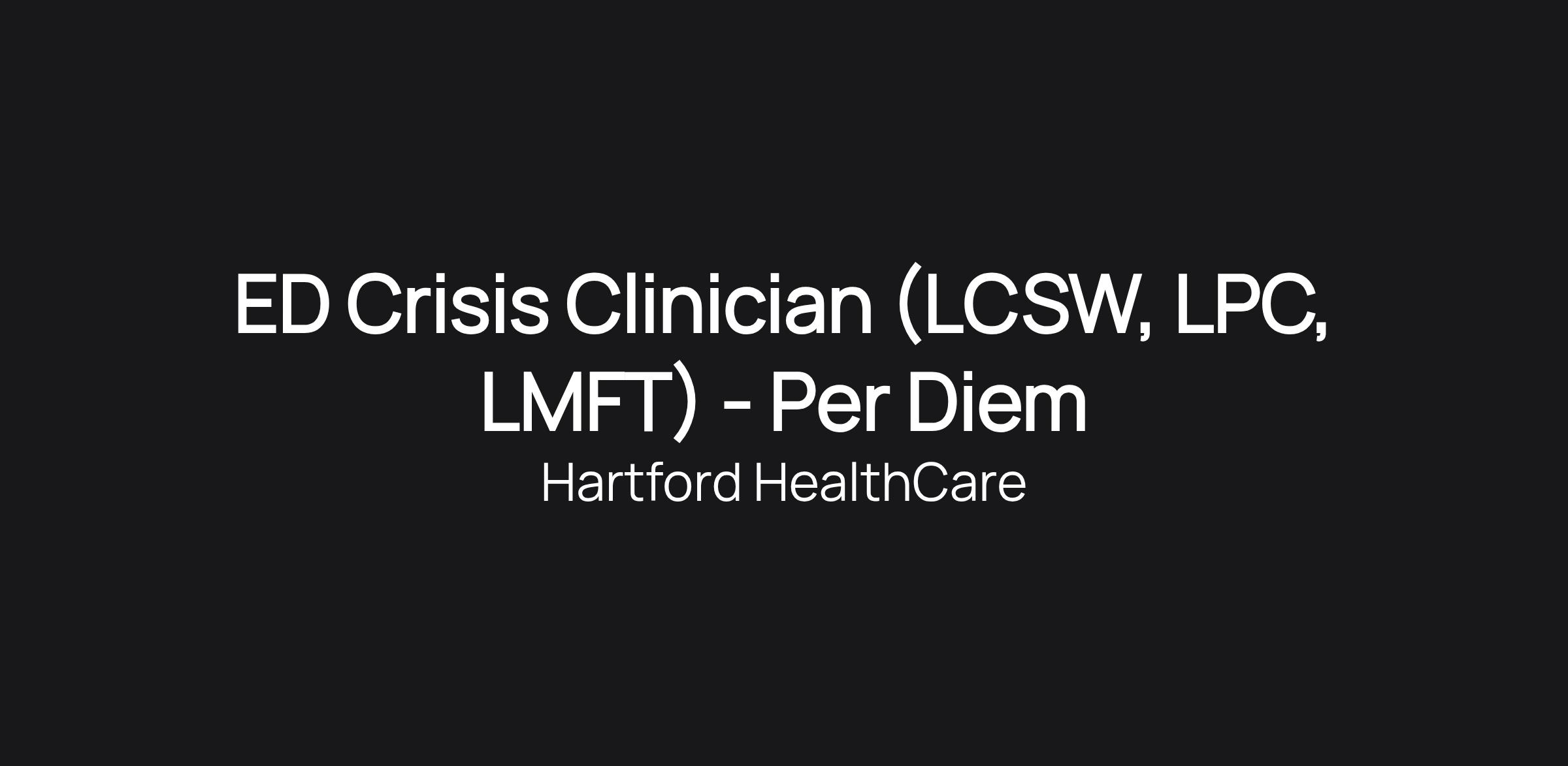 ED Crisis Clinician (LCSW, LPC, LMFT) - Per Diem