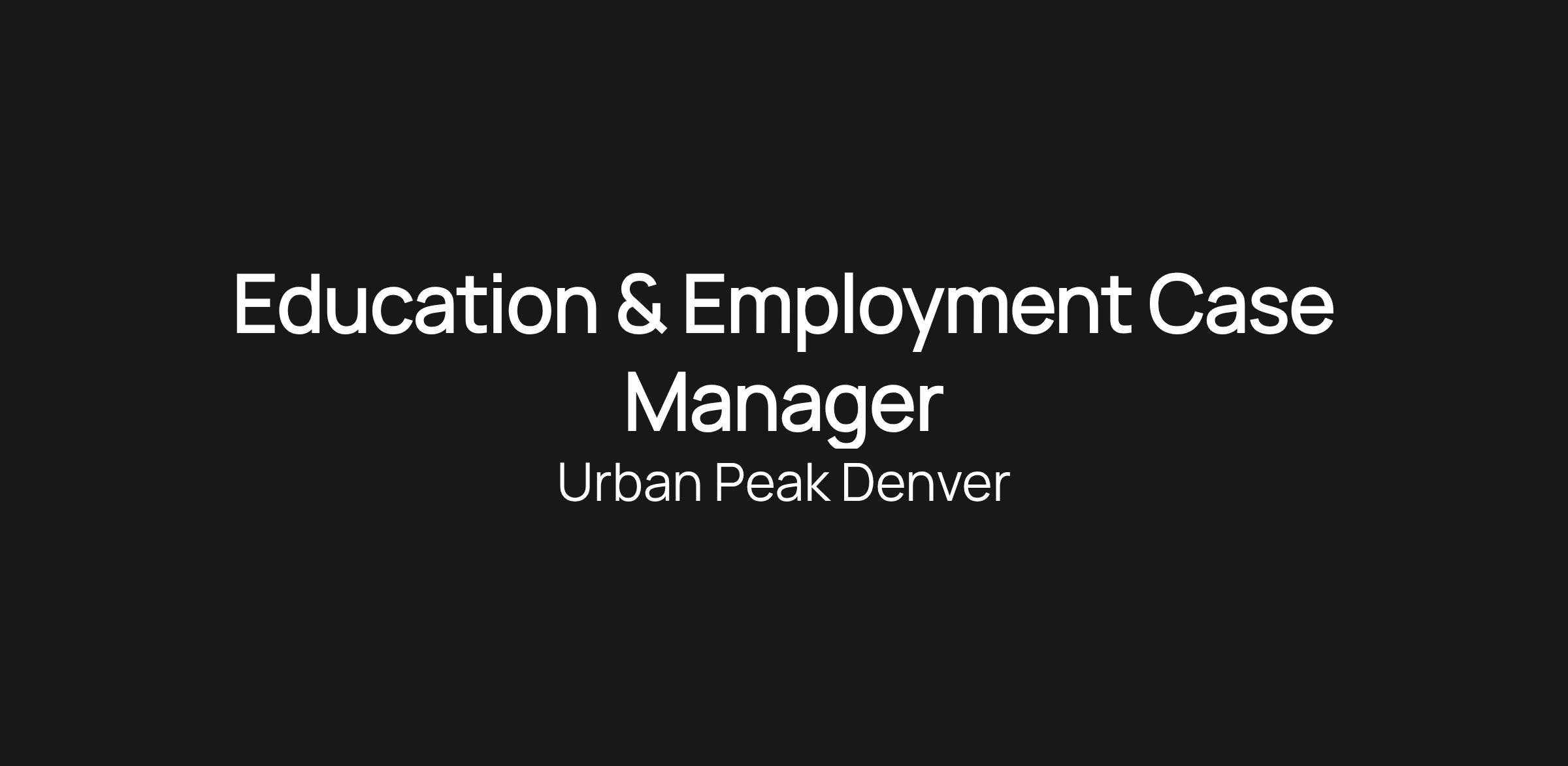 Additionally, the Education & Employment Case Manager will collaborate with the Education & Employment Coordinator in all other aspects of team programming, assist in program facilitation in a manner that accommodates youth and staff safety, coordinate with other Urban Peak staff on youth service plans and goals, collect and input client documentation and service data, and work on other duties as assigned and needed/assigned.