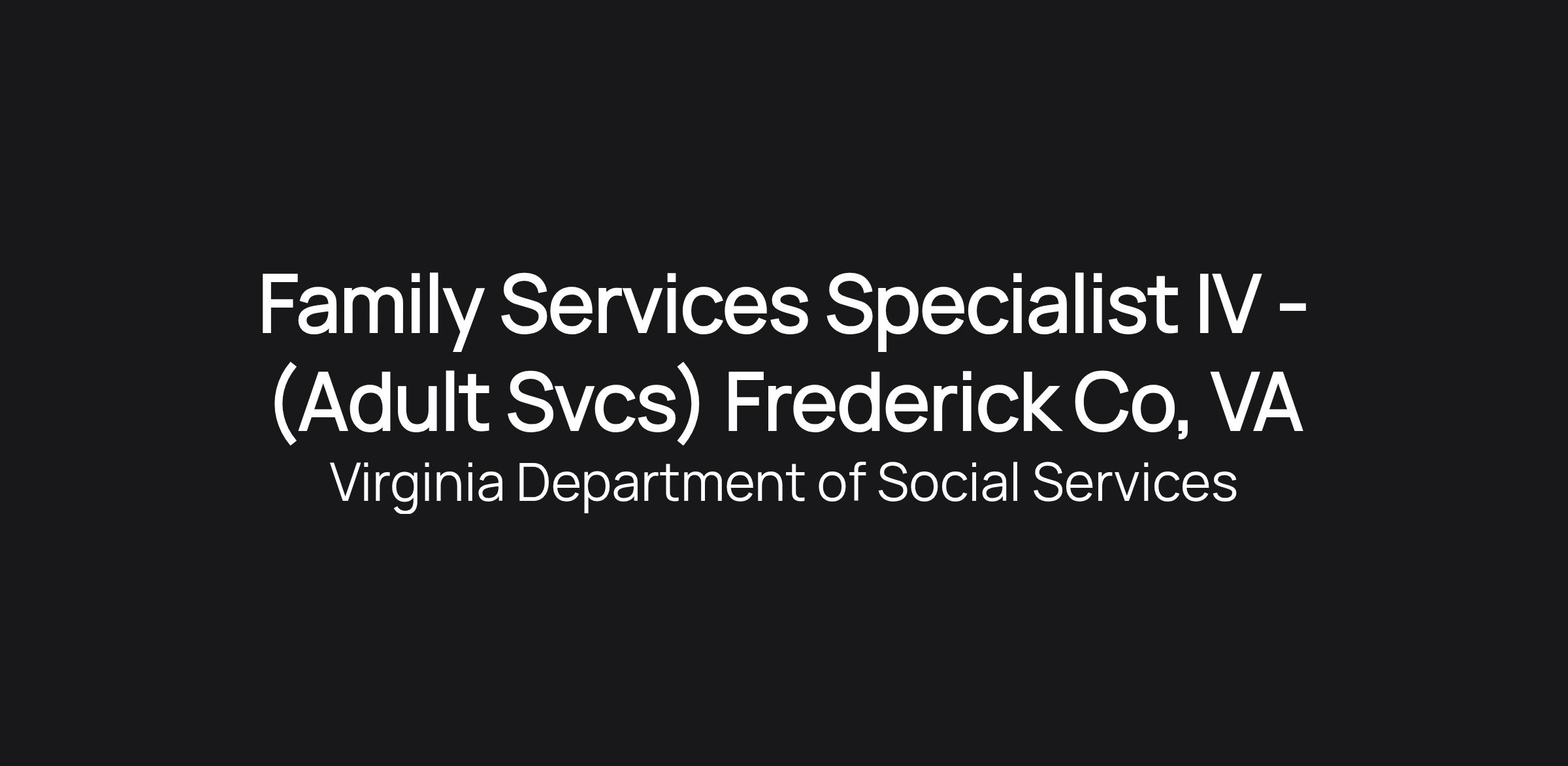 Family Services Specialist IV - (Adult Svcs) Frederick Co, VA