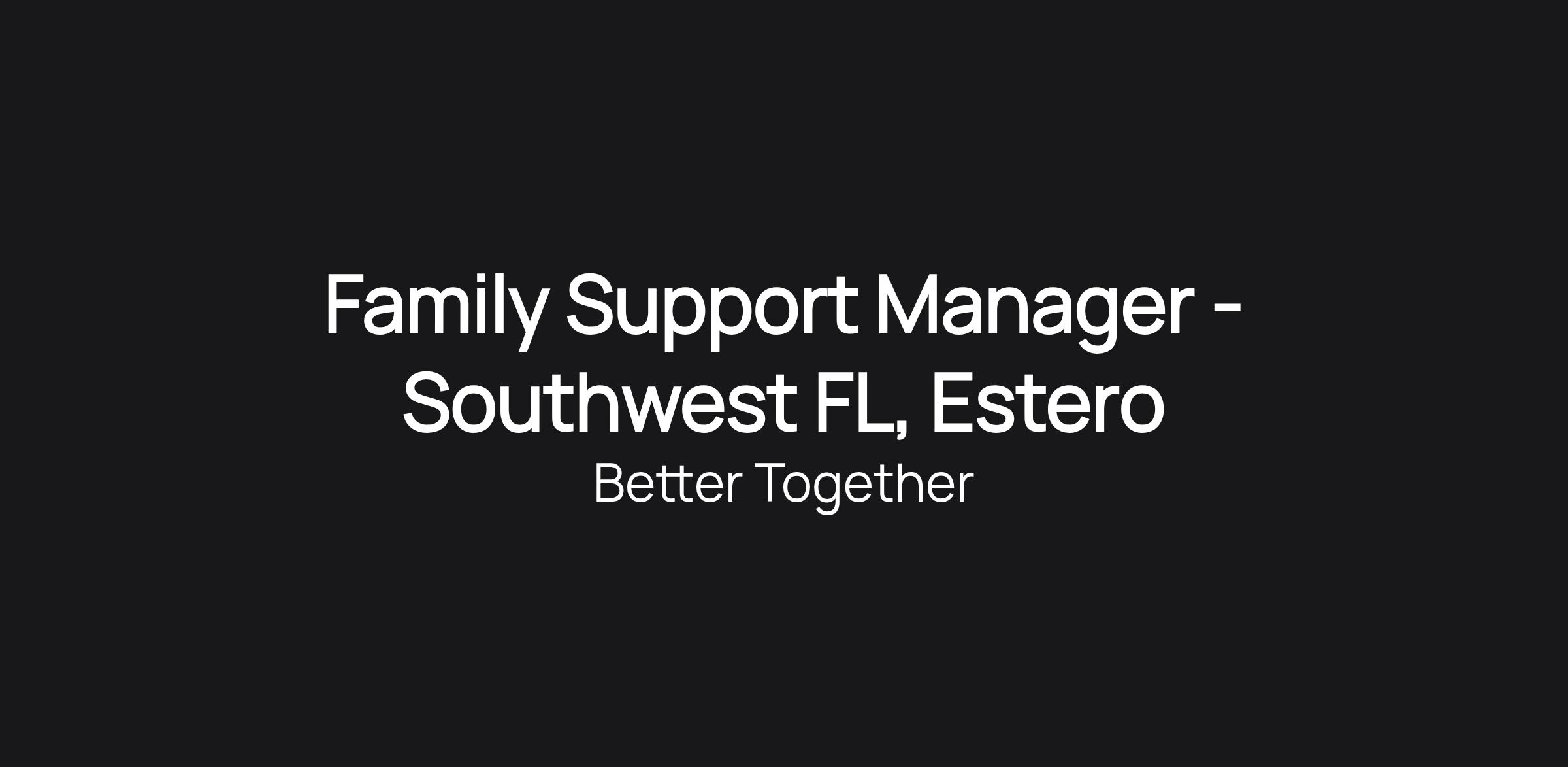 Better Together seeks to fill this position as soon as possible. The job is full-time and may require some work in the evenings and on weekends. In addition, Family Support Managers participate in our on-call schedule rotation. Better Together is headquartered in Naples, Florida, but this position must reside in or near Estero, FL.