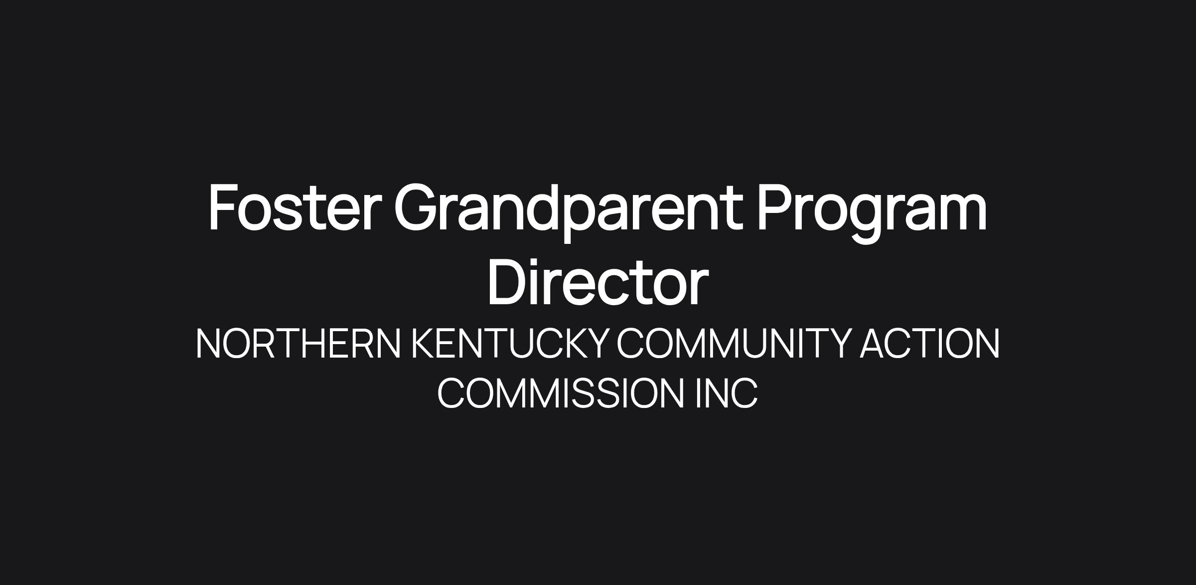 Job DetailsJob Location: Campbell Co Center - Newport, KY 41071Position Type: Full TimePOSITION TITLE: Foster Grandparent Program Director