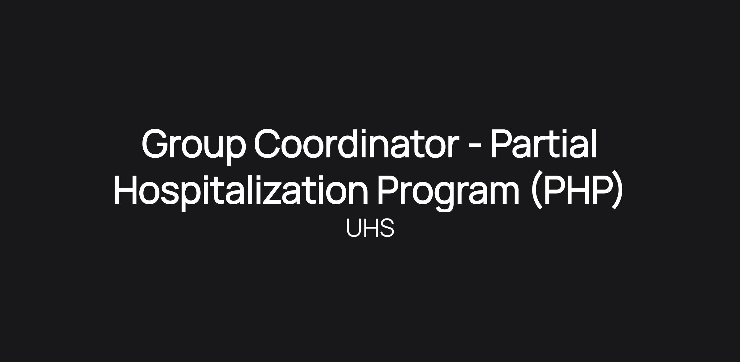 Group Coordinator - Partial Hospitalization Program (PHP)