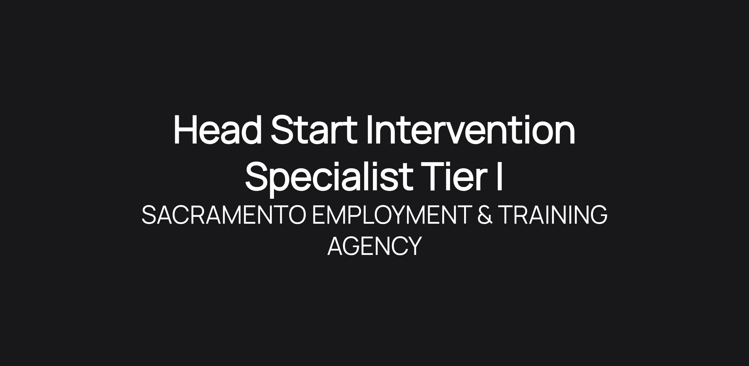Head Start Intervention Specialist Tier I