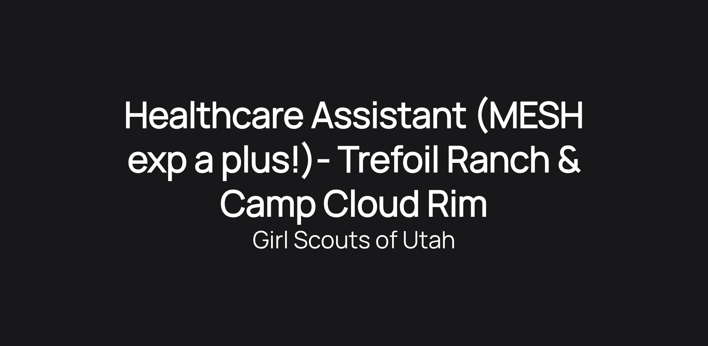 Healthcare Assistant (MESH exp a plus!)- Trefoil Ranch & Camp Cloud Rim