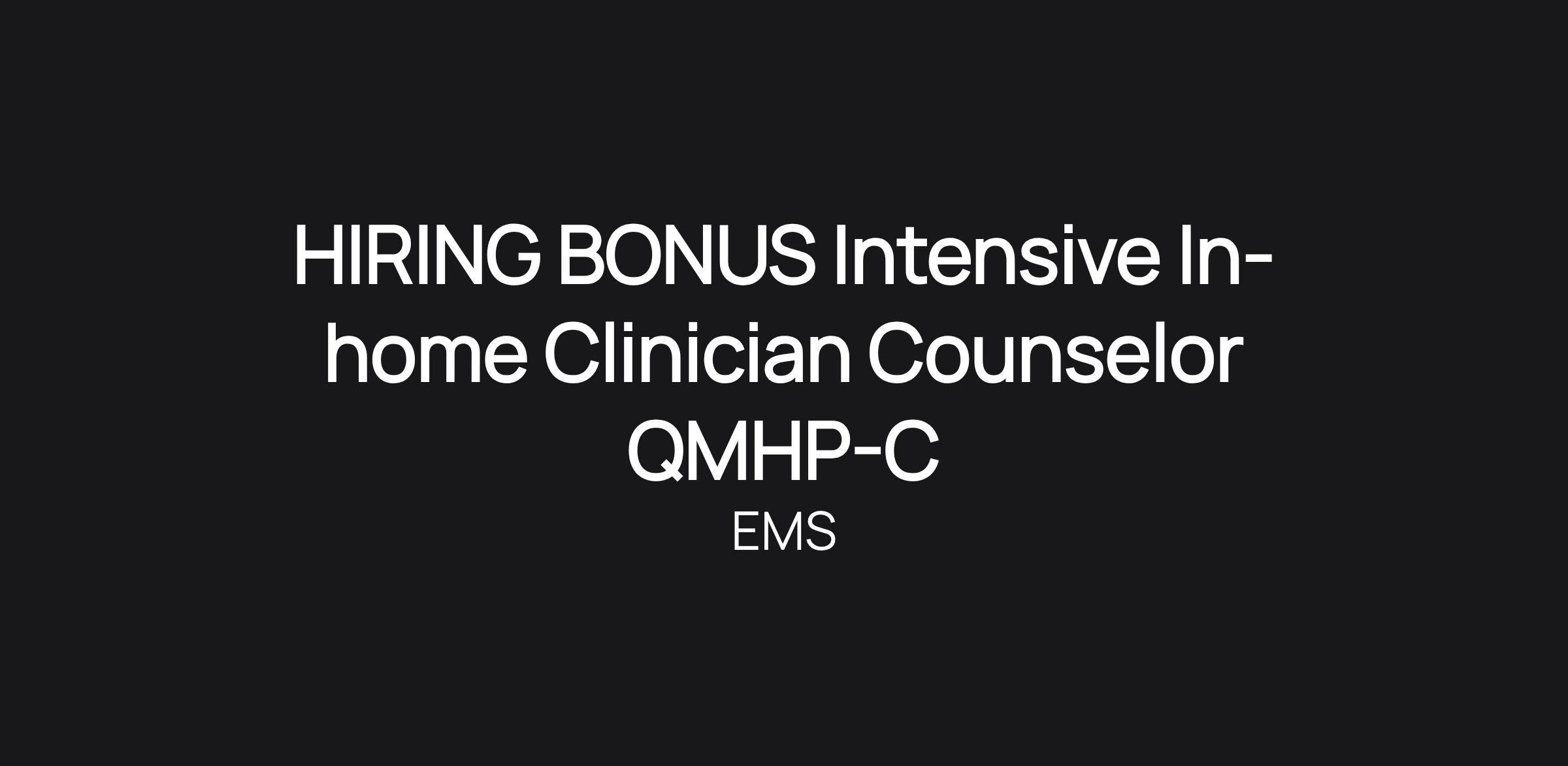 HIRING BONUS Intensive In-home Clinician Counselor QMHP-C