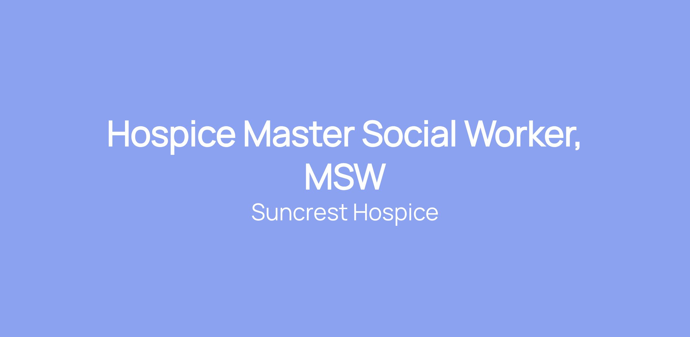 Hospice Master Social Worker, MSW