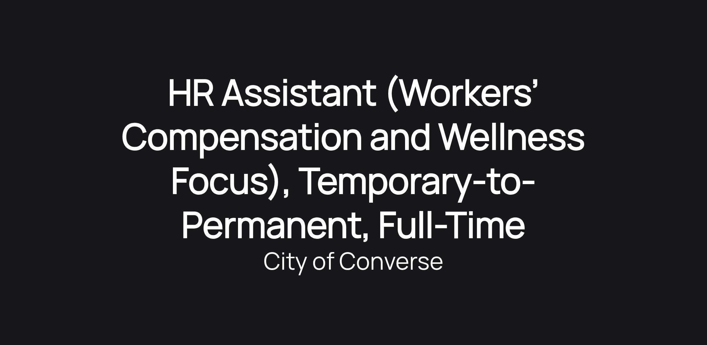 The City of Converse is seeking a motivated, detail-oriented Human Resources Assistant to support daily HR operations with a primary focus on workers’ compensation administration, reporting, employee wellness support, and related administrative processes. This position will help improve the tracking, coordination, and follow-through associated with workers’ compensation matters while also supporting wellness initiatives, resource communication, and post-incident administrative coordination.