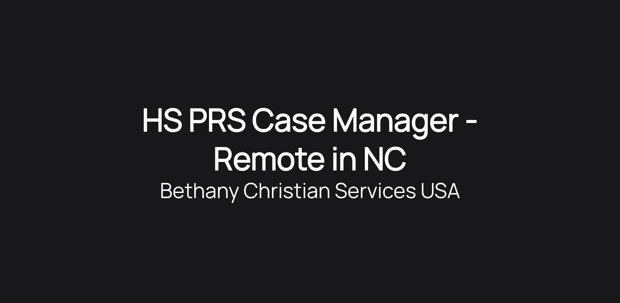 HS PRS Case Manager - Remote in NC