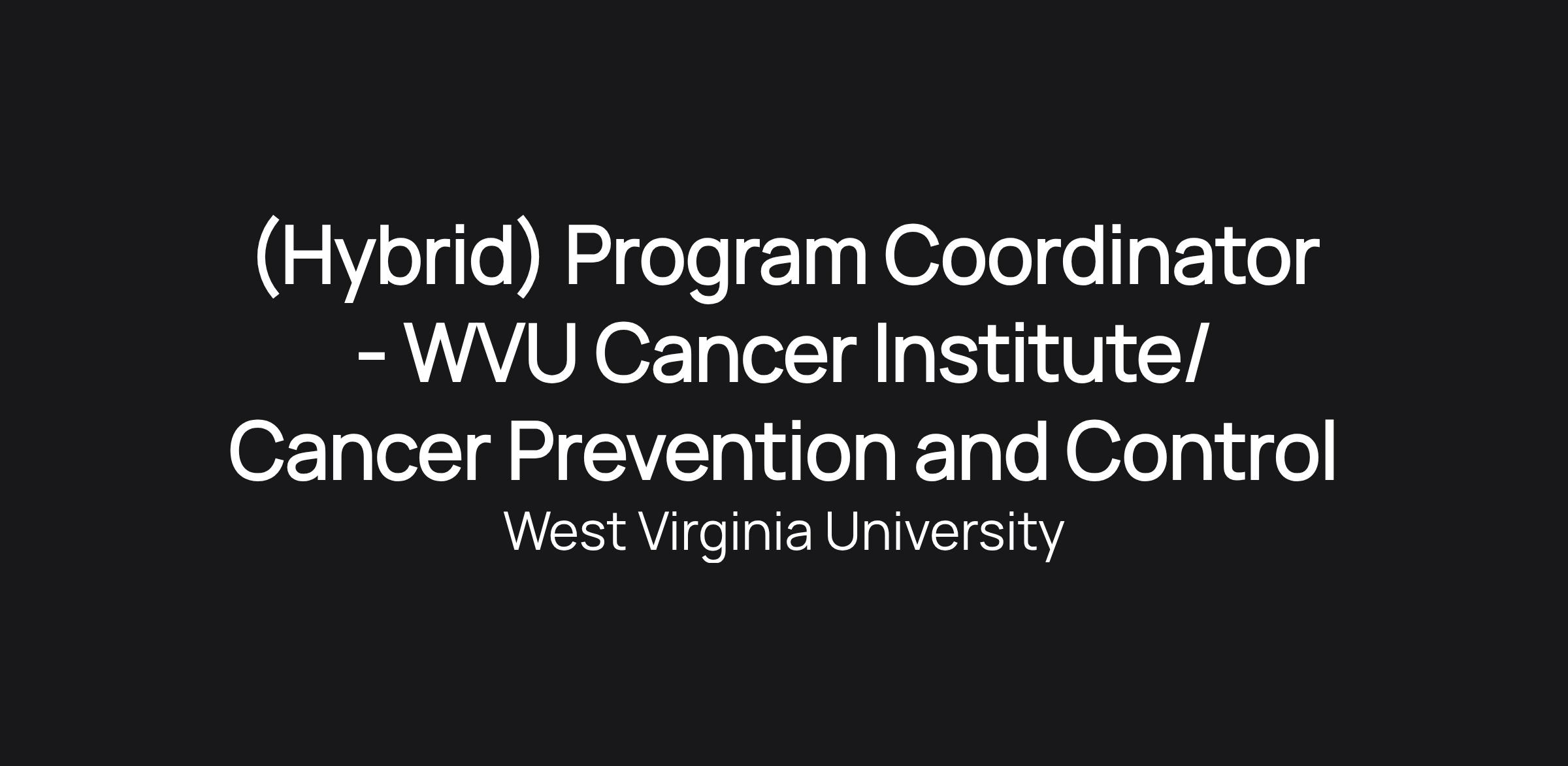 (Hybrid) Program Coordinator - WVU Cancer Institute/ Cancer Prevention and Control