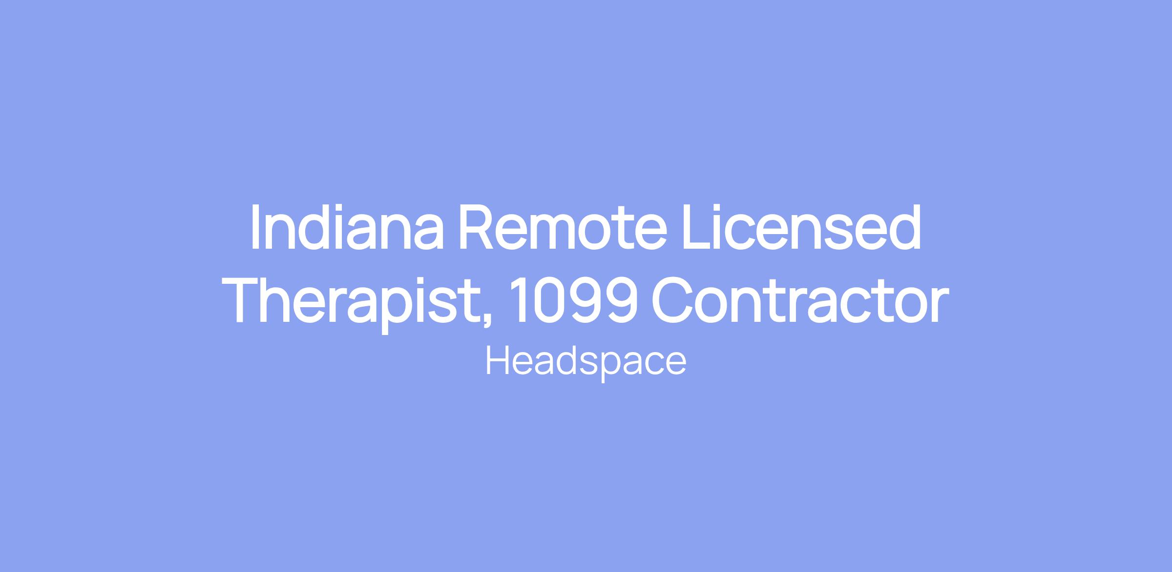 Indiana Remote Licensed Therapist, 1099 Contractor