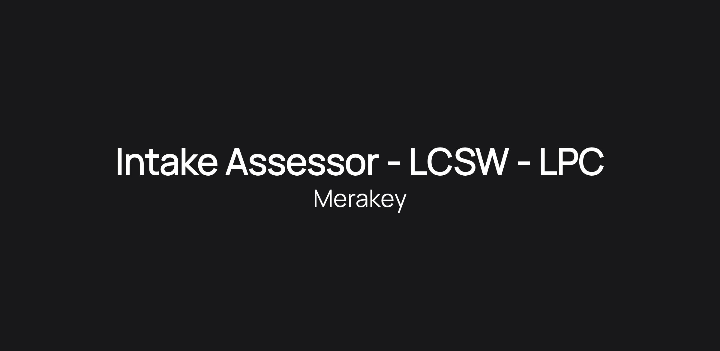 Intake Assessor - LCSW - LPC