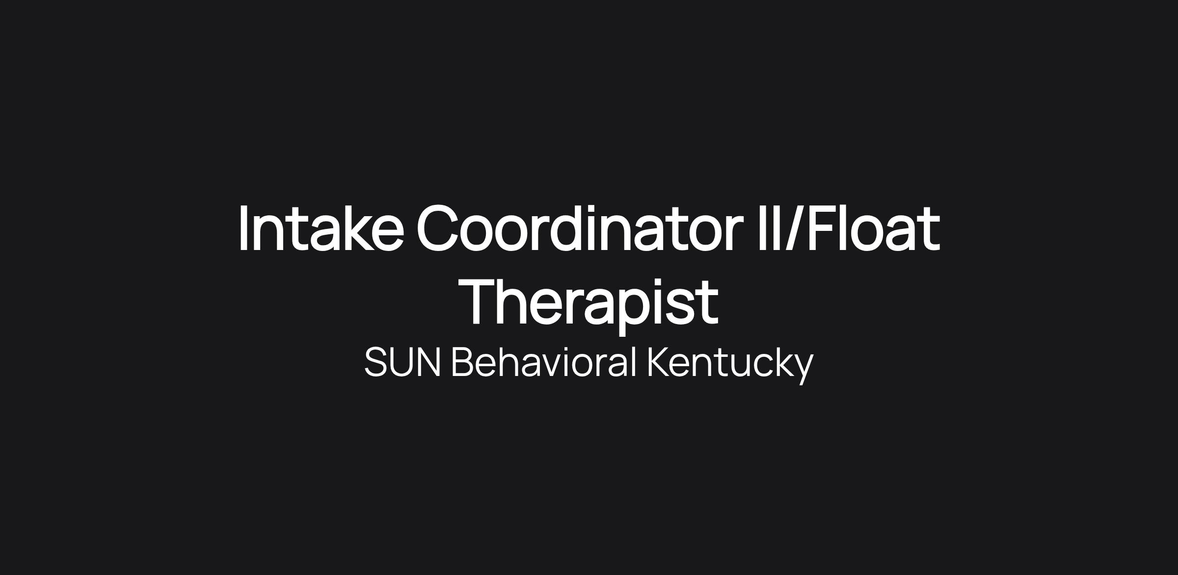 Intake Coordinator II/Float Therapist