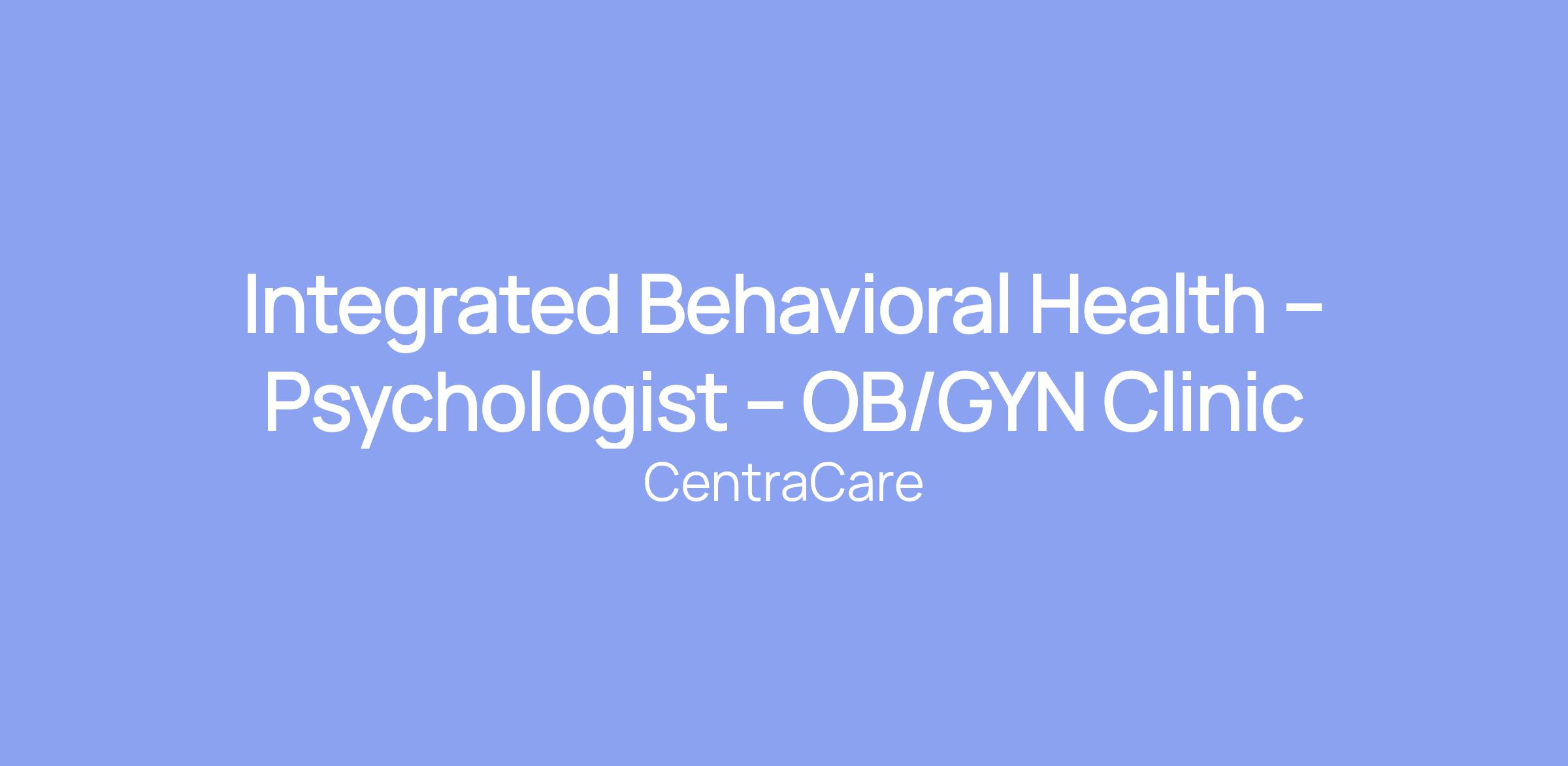 Integrated Behavioral Health – Psychologist – OB/GYN Clinic