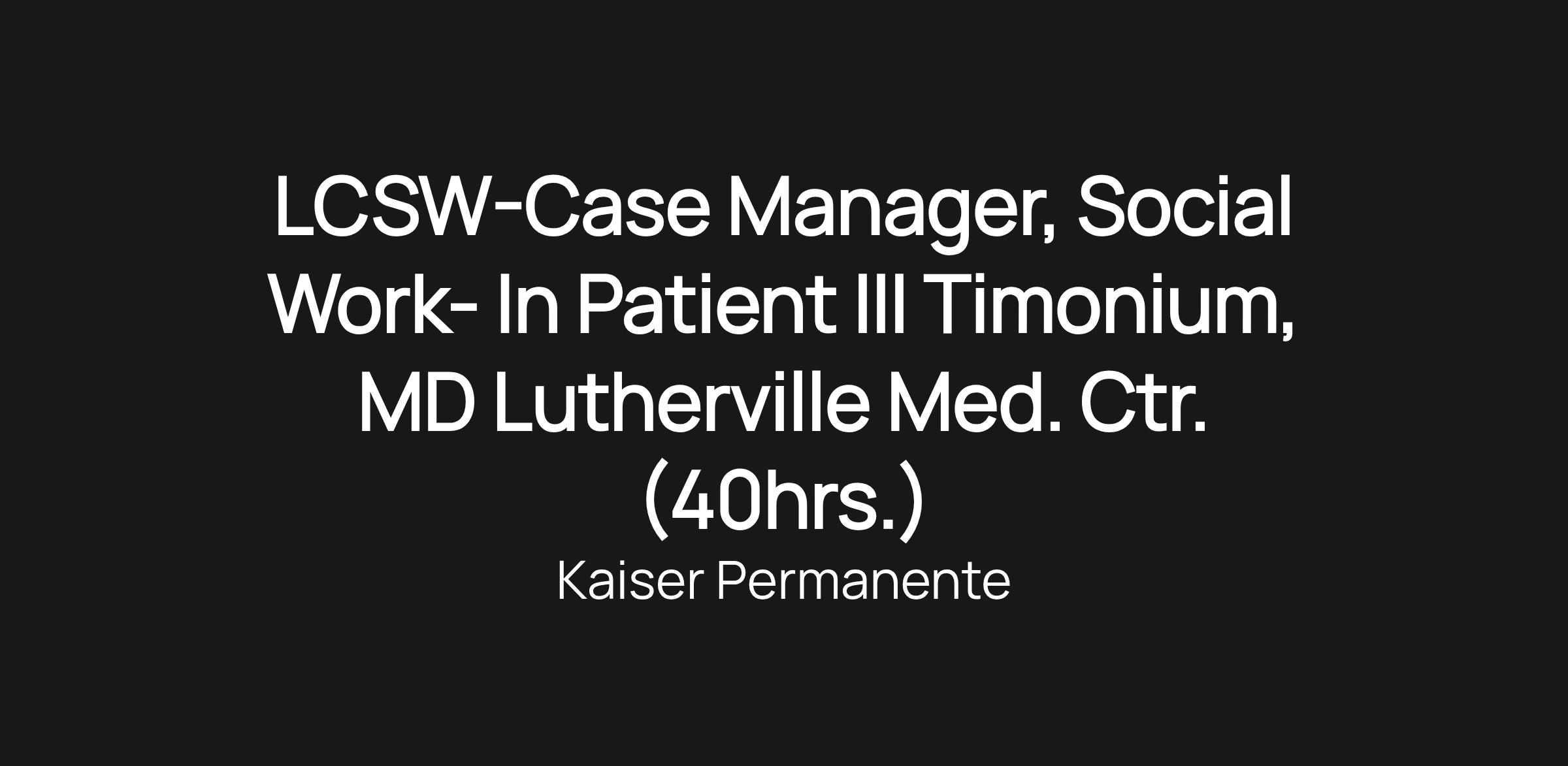 LCSW-Case Manager, Social Work- In Patient III Timonium, MD Lutherville Med. Ctr. (40hrs.)