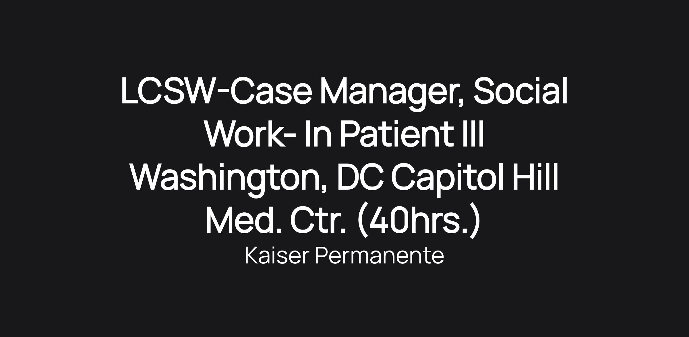 LCSW-Case Manager, Social Work- In Patient III Washington, DC Capitol Hill Med. Ctr. (40hrs.)