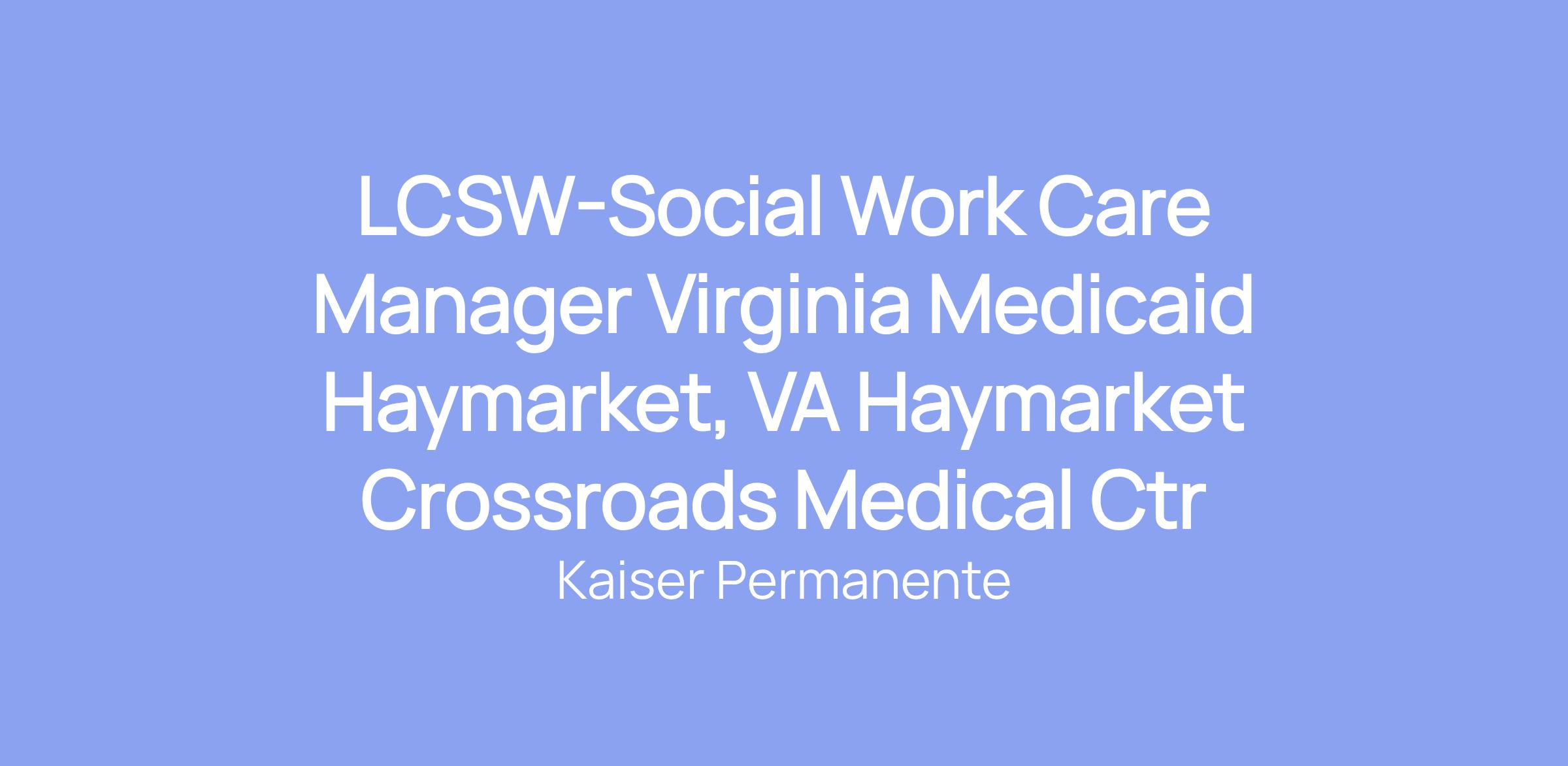 LCSW-Social Work Care Manager Virginia Medicaid Haymarket, VA Haymarket Crossroads Medical Ctr