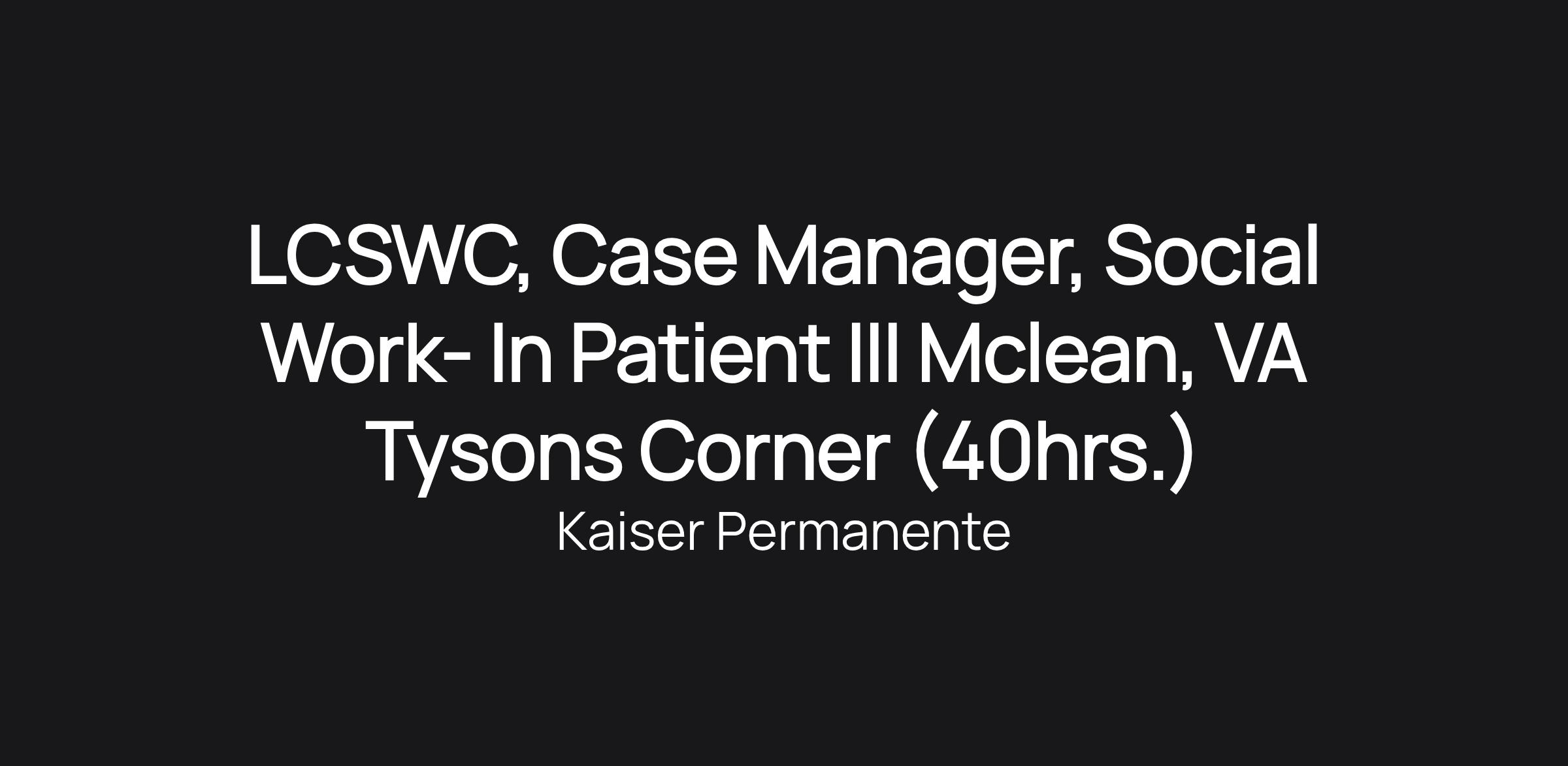 LCSWC, Case Manager, Social Work- In Patient III Mclean, VA Tysons Corner (40hrs.)
