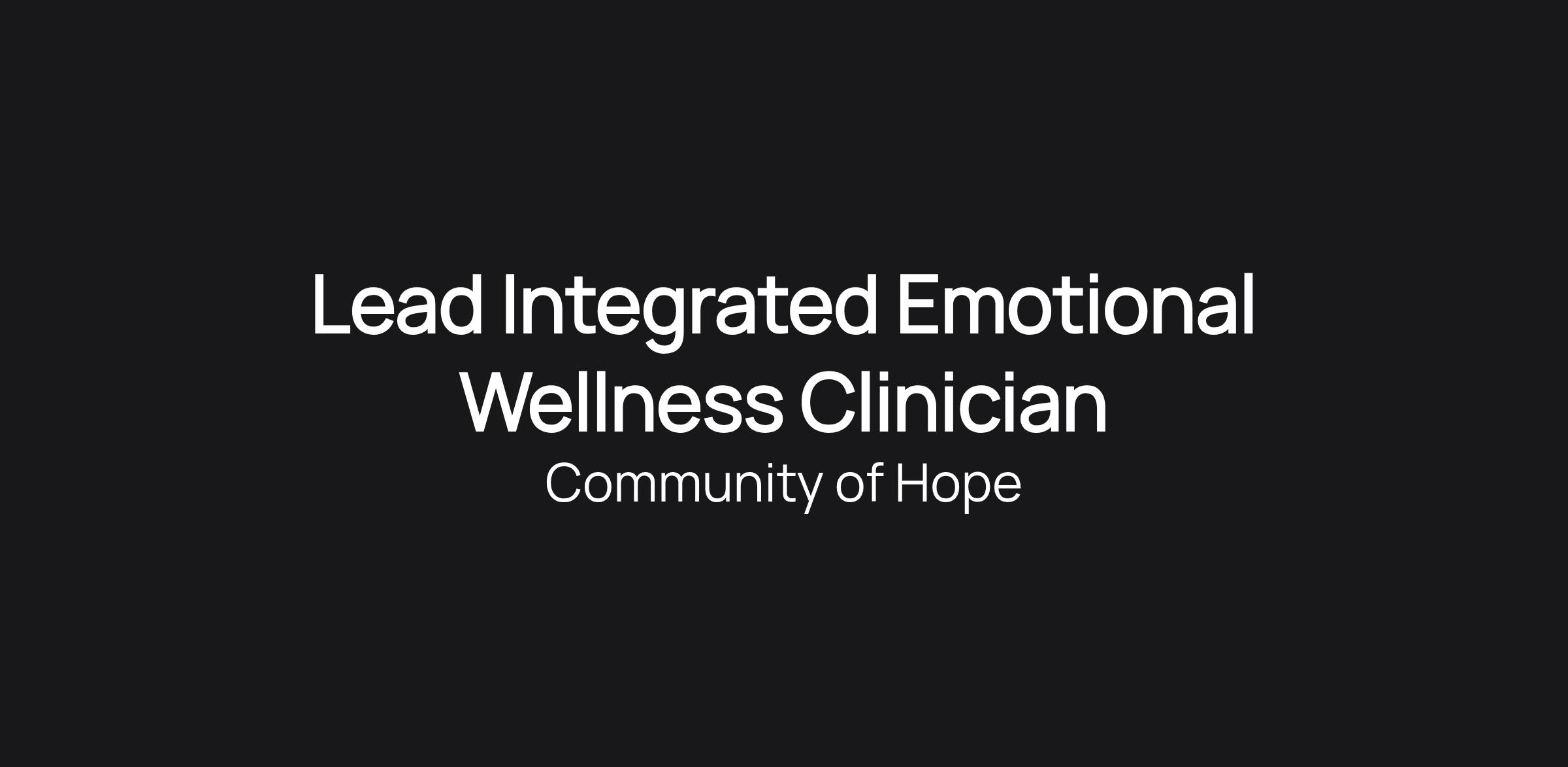 Lead Integrated Emotional Wellness Clinician