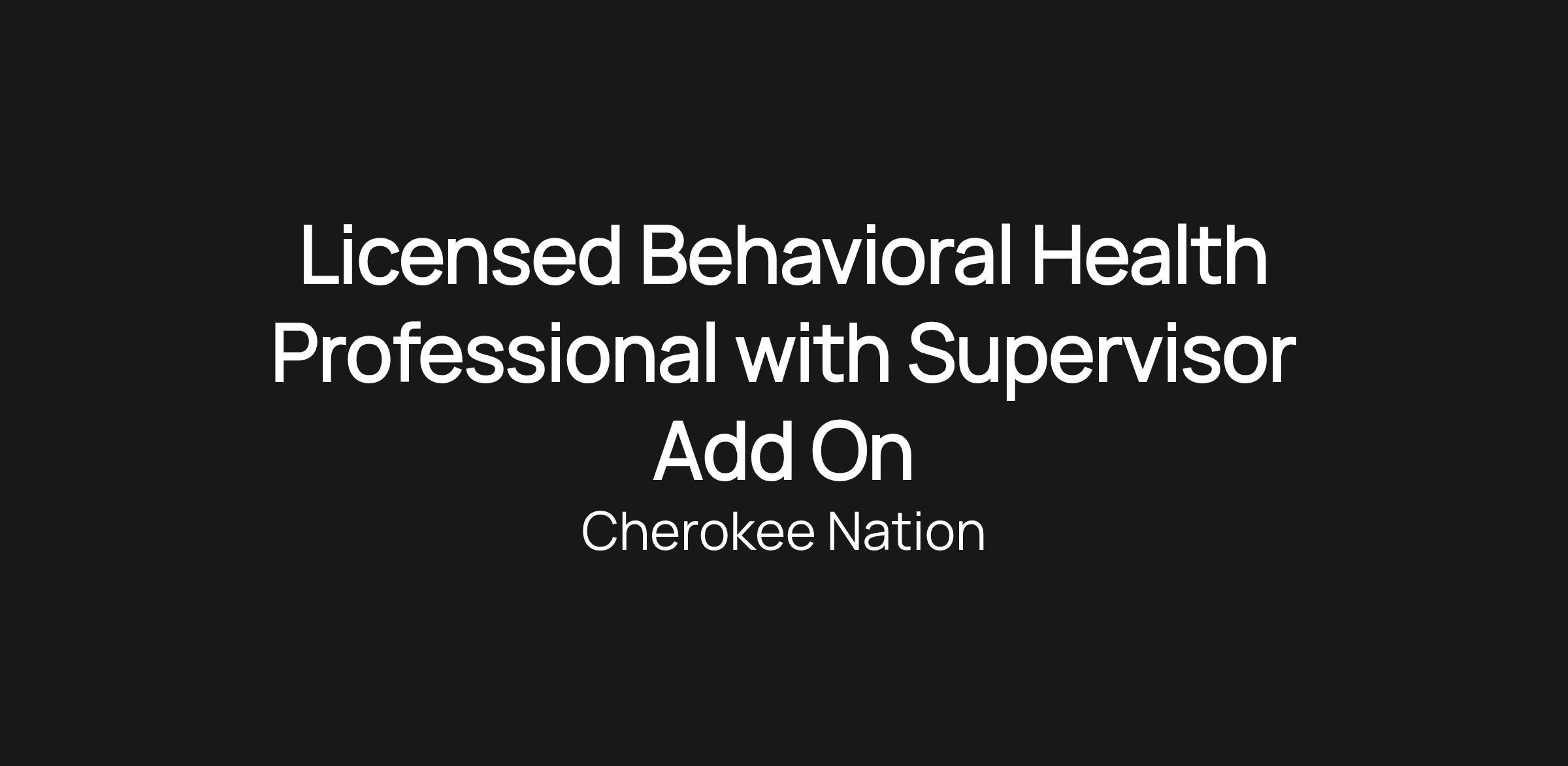 Must possess a valid driver's license with a driving history verified through a motor vehicle report that meets requirements for Cherokee Nation underwriting rating. Must possess and maintain a current license to practice in the state of Oklahoma within one (1) of the following areas of practice:  Psychology, Social Work (Licensed Clinical Social Worker only), Professional Counselor, Marriage and Family Therapist, Behavioral Practitioner, or Alcohol and Drug Counselor. Must possess and maintain Basic Life Support (BLS) Certification.  Can be obtained during orientation. Approval from the appropriate licensing authority to supervise LBHP Candidates preferred. Must possess and maintain certification and training for any assessment that requires it to be administered and interpreted.