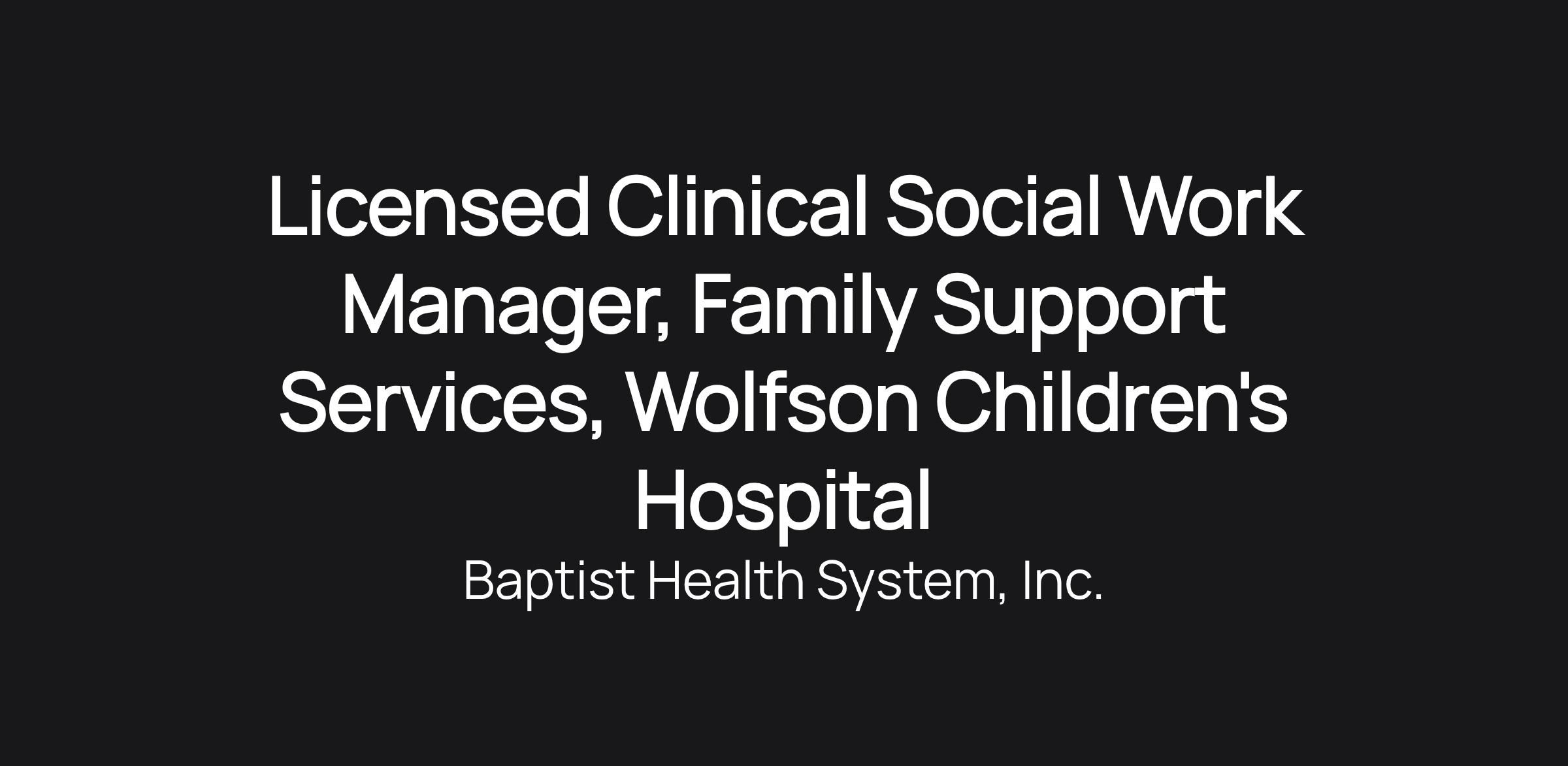 Licensed Clinical Social Work Manager, Family Support Services, Wolfson Children's Hospital