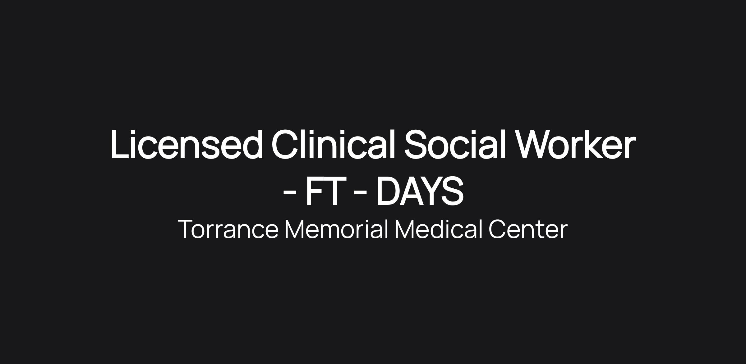 Licensed Clinical Social Worker - FT - DAYS