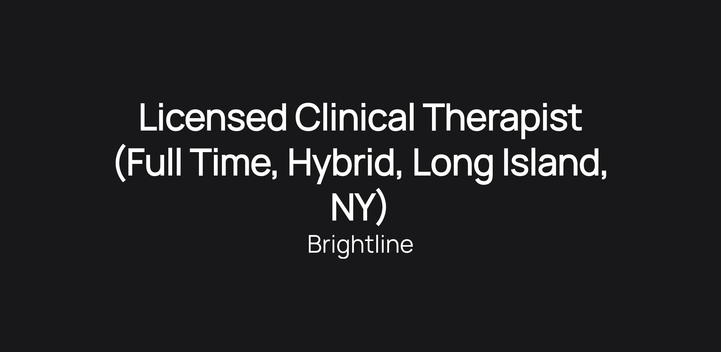 Welcome to Brightline! We are searching for Full-Time, Licensed Clinical Therapists to deliver both onsite and virtual care at our clinic location in Long Island, 3000 Marcus Avenue, Suite 3E01, Lake Success, NY 11042!
