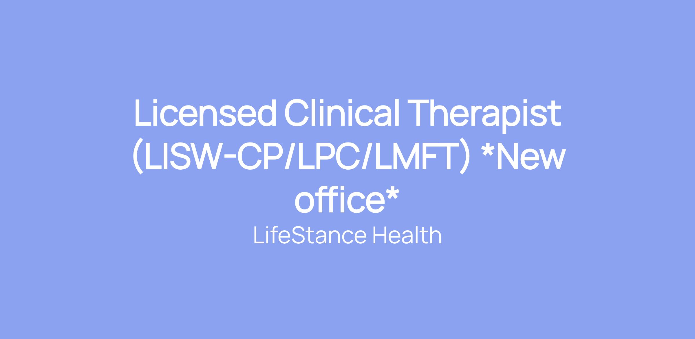 Licensed Clinical Therapist (LISW-CP/LPC/LMFT) *New office*