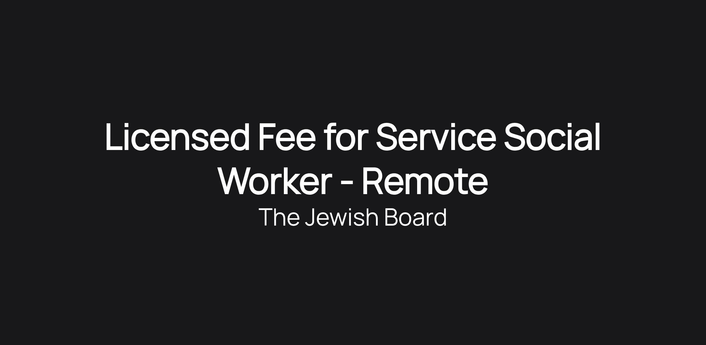 Licensed Fee for Service Social Worker - Remote