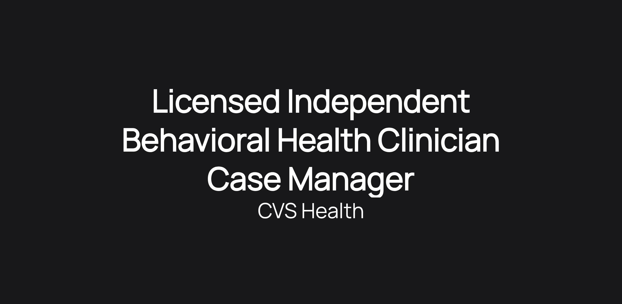 Licensed Independent Behavioral Health Clinician Case Manager