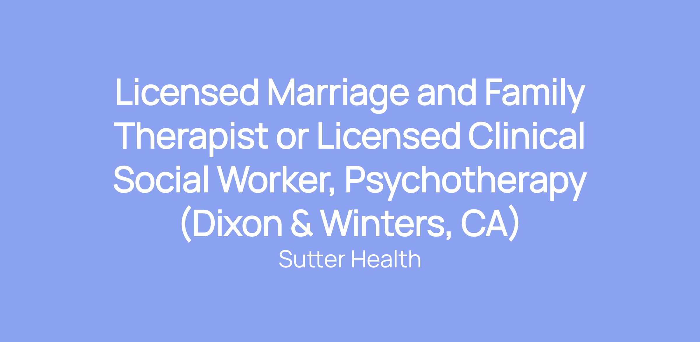Licensed Marriage and Family Therapist or Licensed Clinical Social Worker, Psychotherapy (Dixon & Winters, CA)