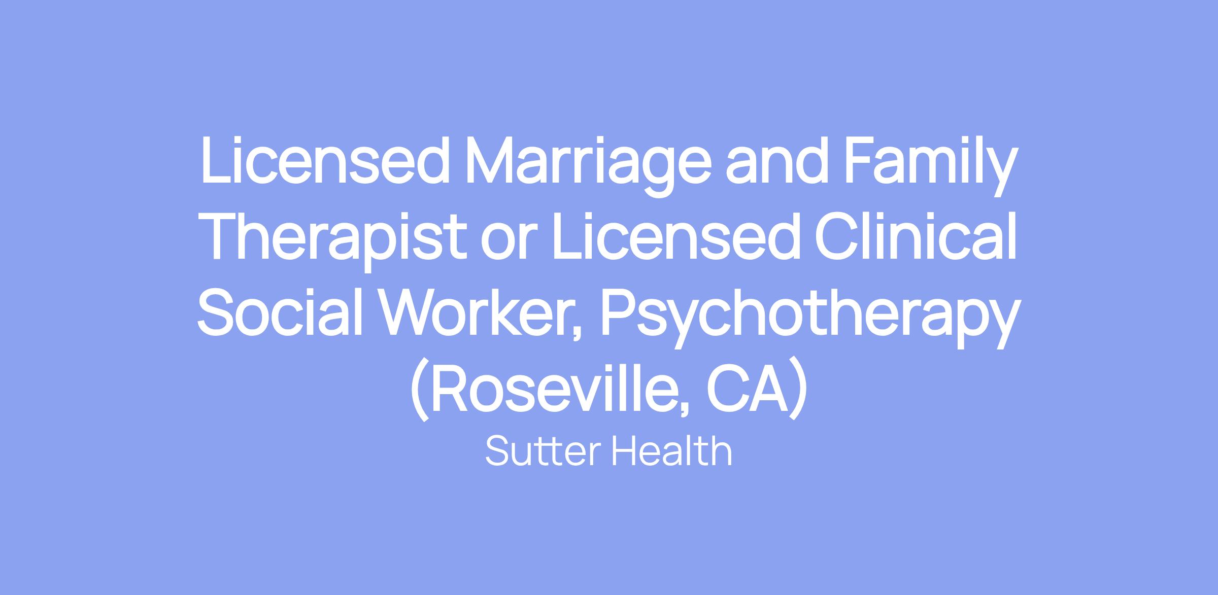 Licensed Marriage and Family Therapist or Licensed Clinical Social Worker, Psychotherapy (Roseville, CA)