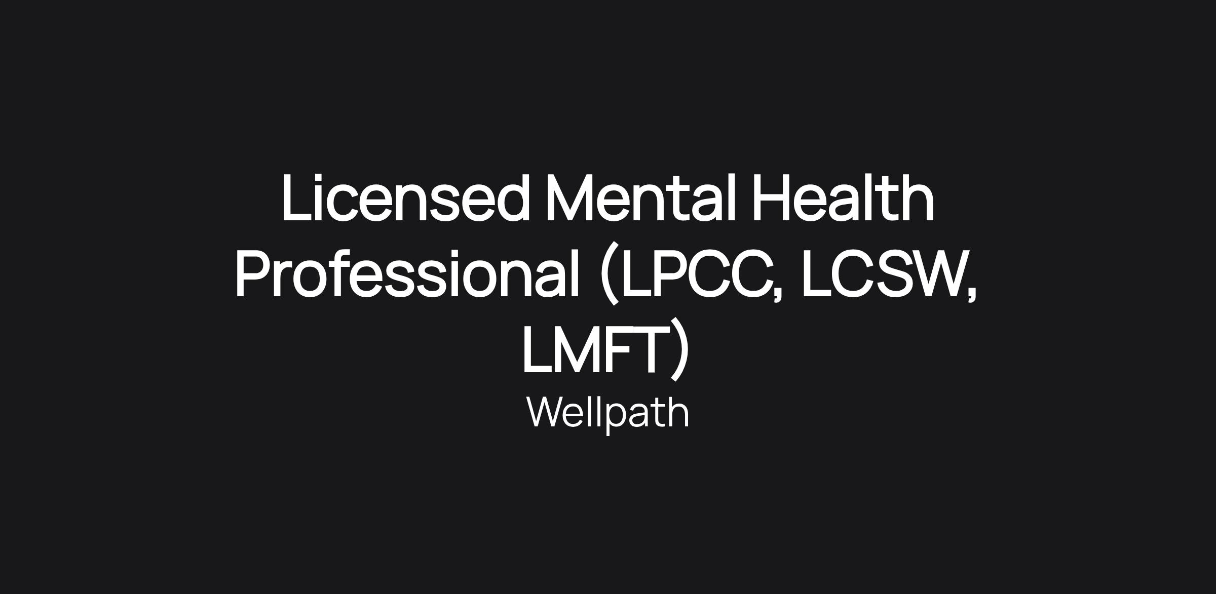Licensed Mental Health Professional (LPCC, LCSW, LMFT)