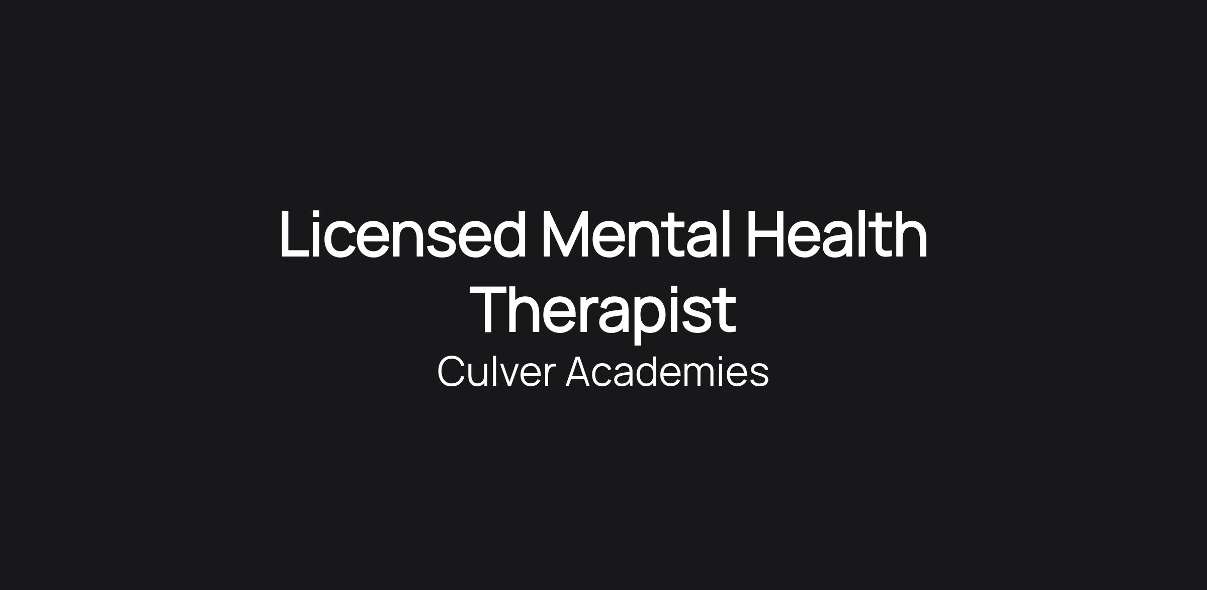 Culver Academies is a private boarding school. We enroll students and employ faculty and staff from across the United States and around the world. We are seeking diverse talent to support our mission and enrich our learning environment. At Culver, we are always looking to strengthen our organizational leadership by adding outstanding talent to our faculty and staff whose passion is to serve our students.