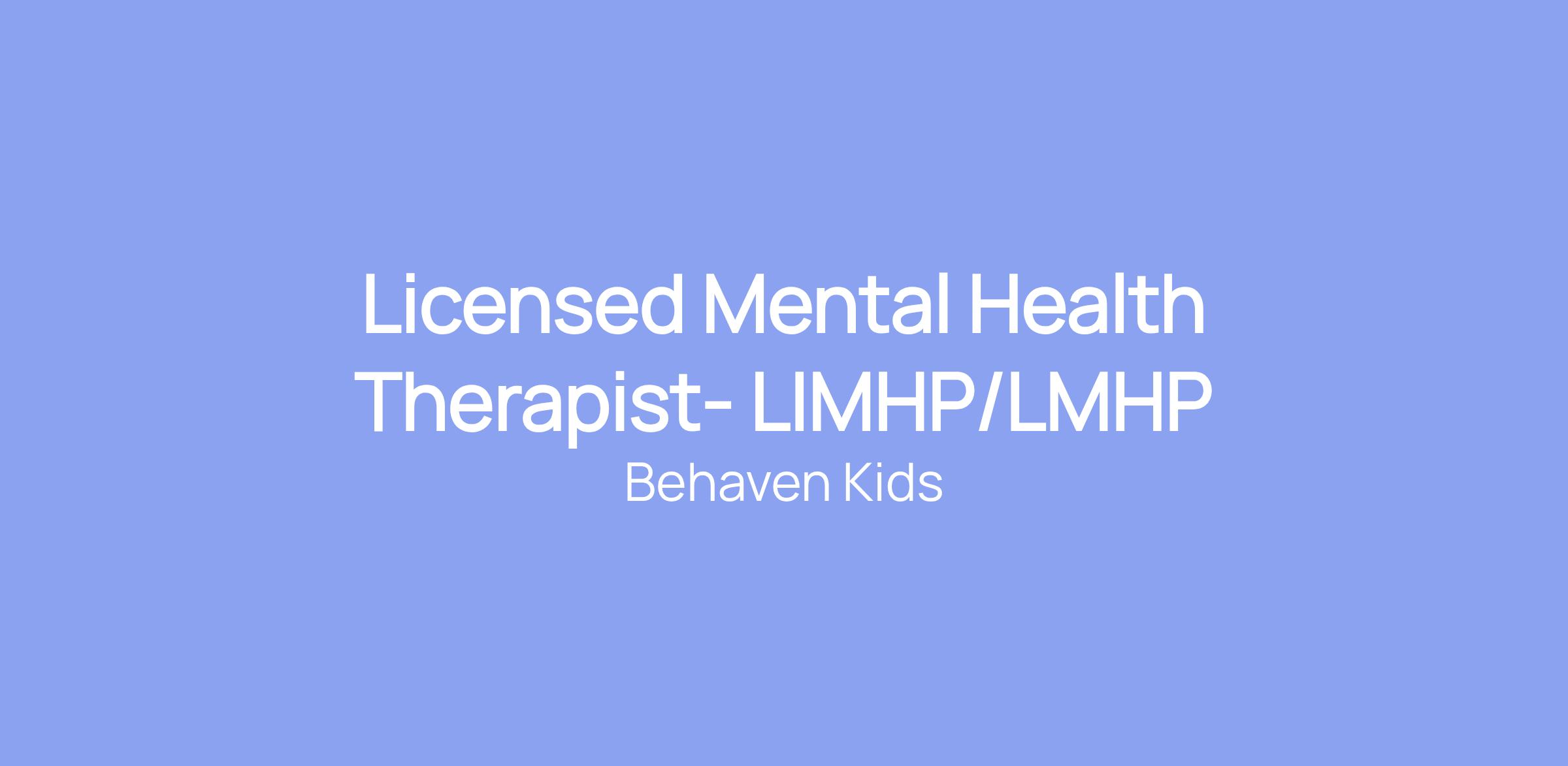 Licensed Mental Health Therapist- LIMHP/LMHP