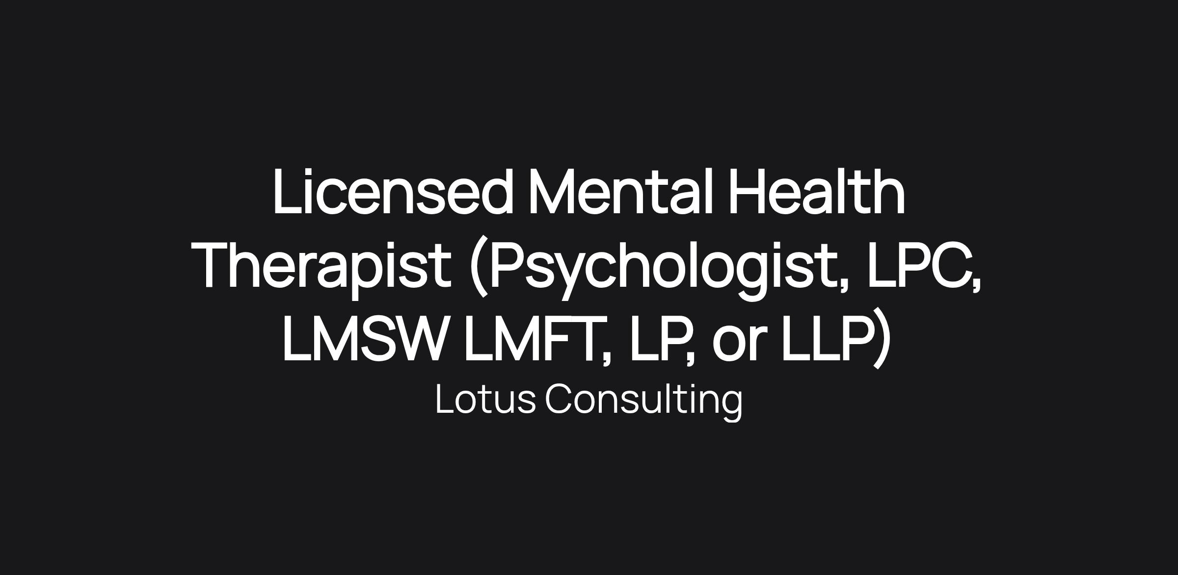 Licensed Mental Health Therapist (Psychologist, LPC, LMSW LMFT, LP, or LLP)