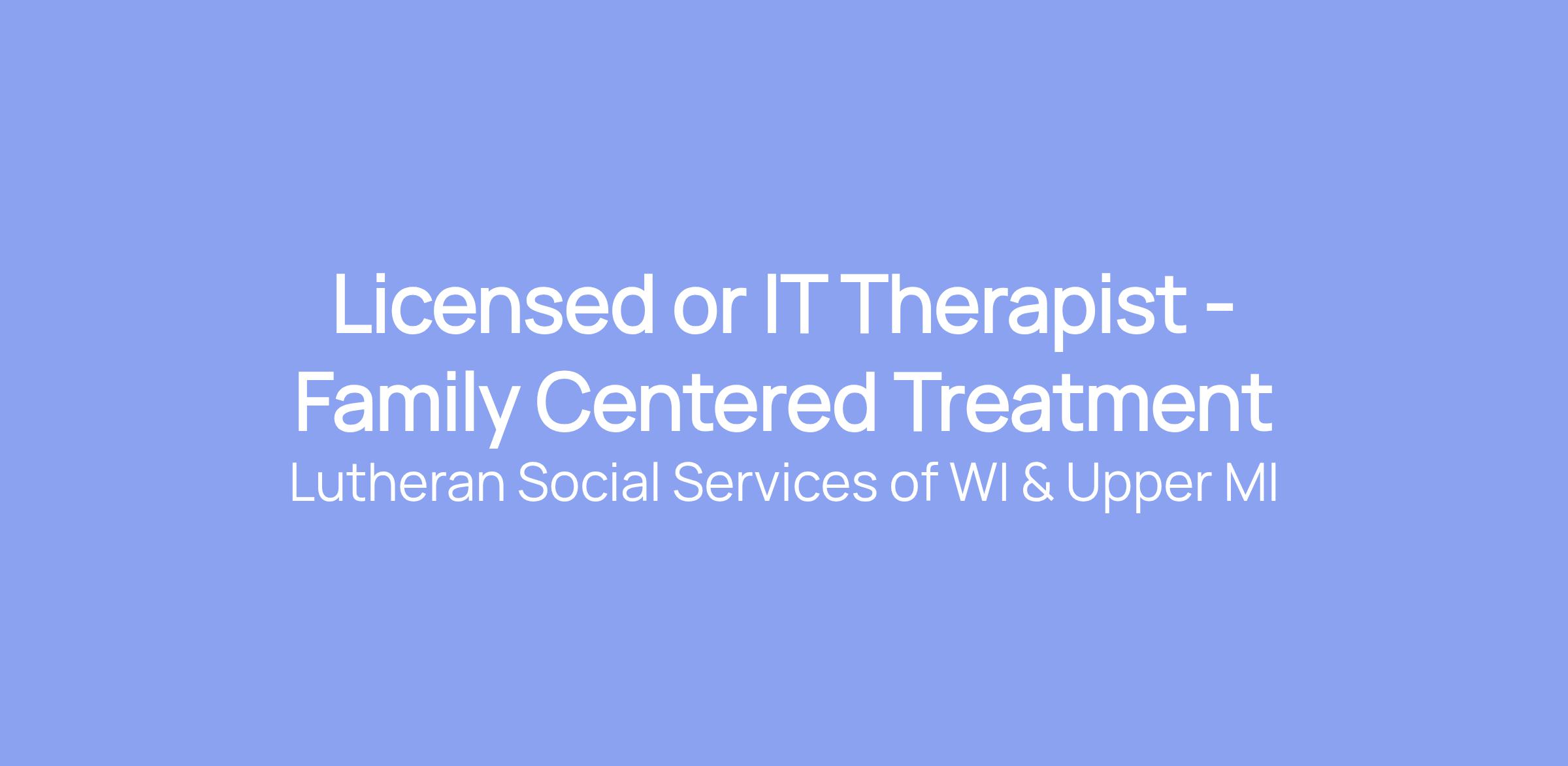 Licensed or IT Therapist - Family Centered Treatment