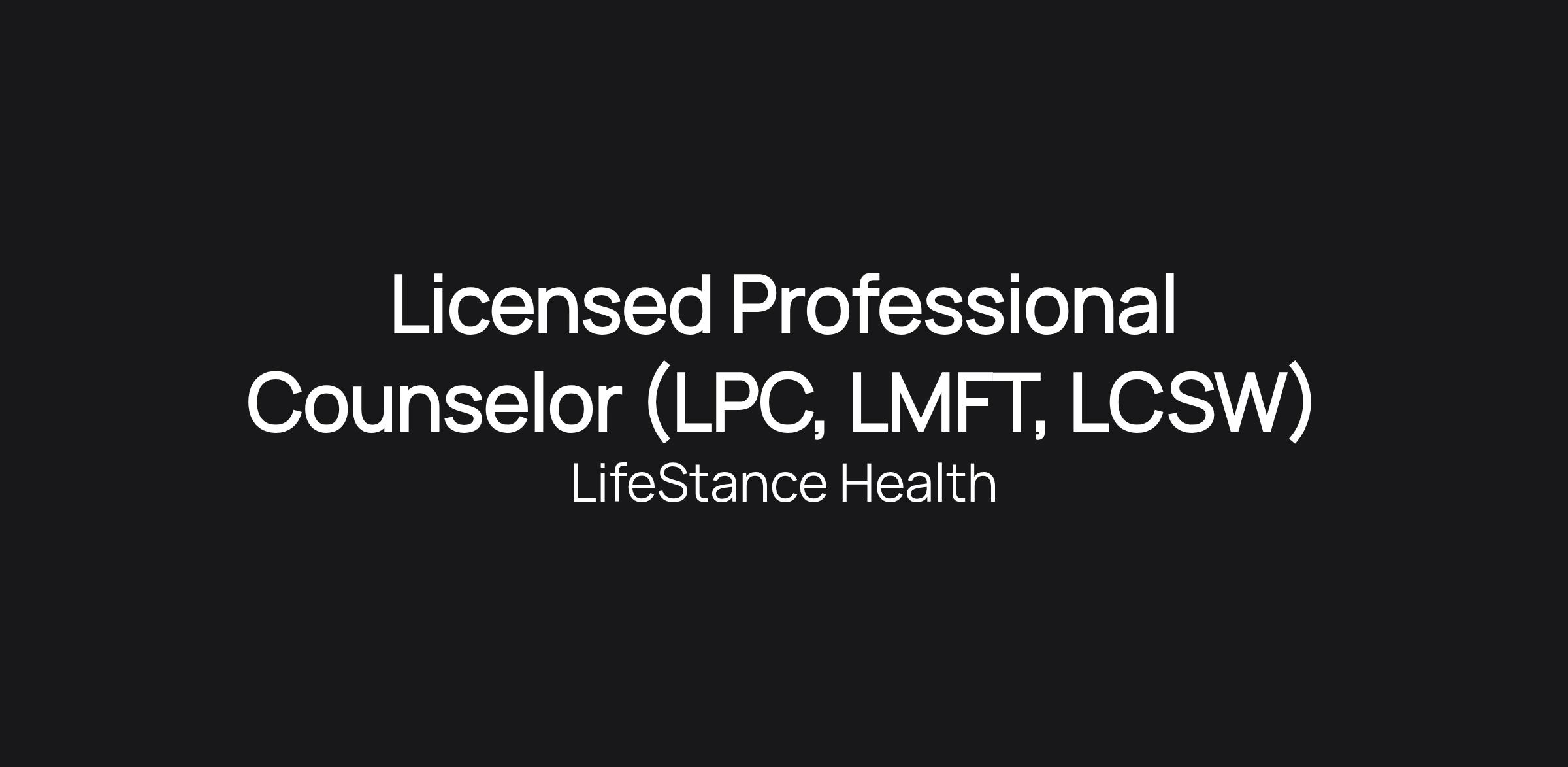 Licensed Professional Counselor (LPC, LMFT, LCSW)