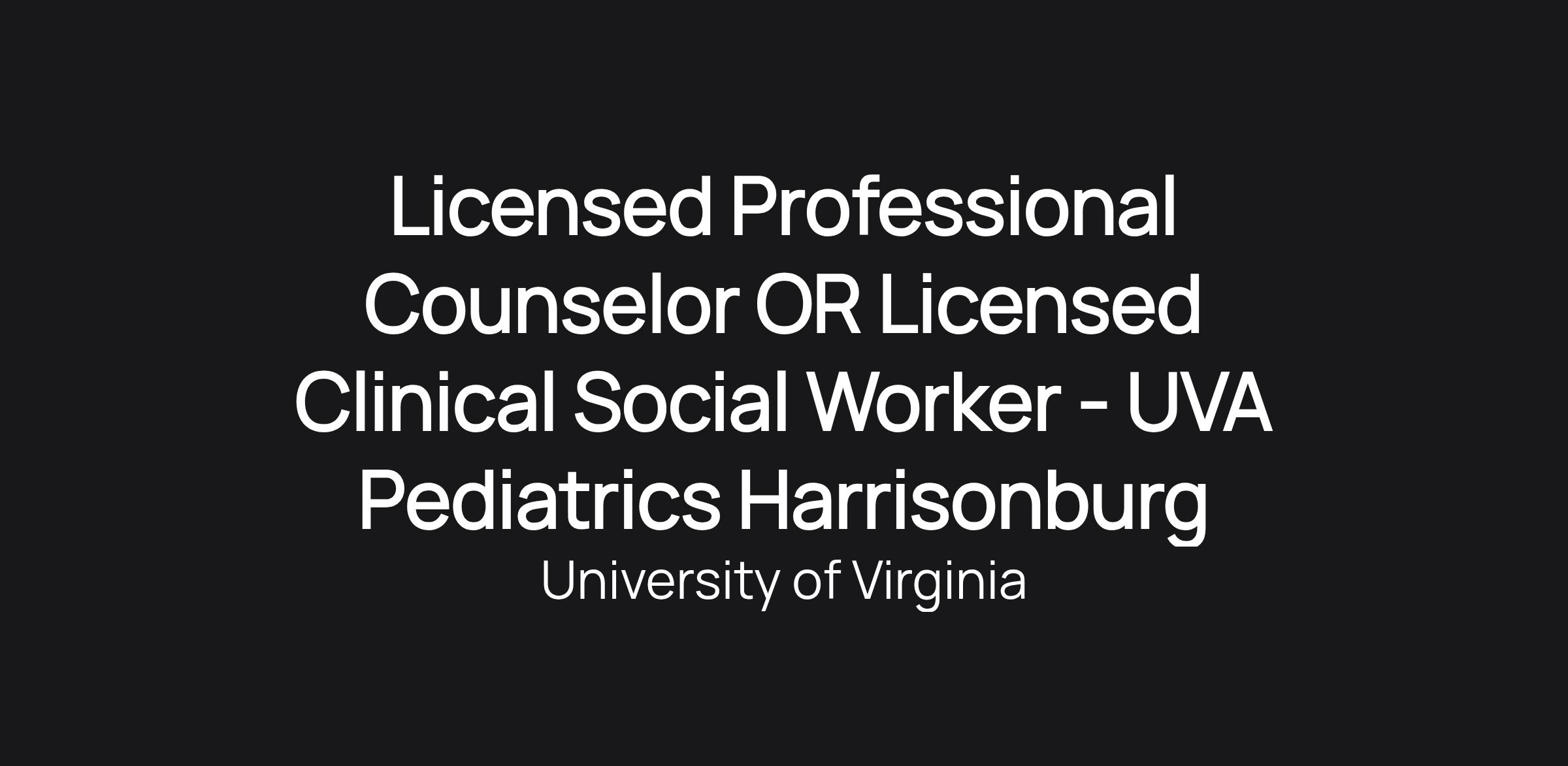 Licensed Professional Counselor OR Licensed Clinical Social Worker - UVA Pediatrics Harrisonburg